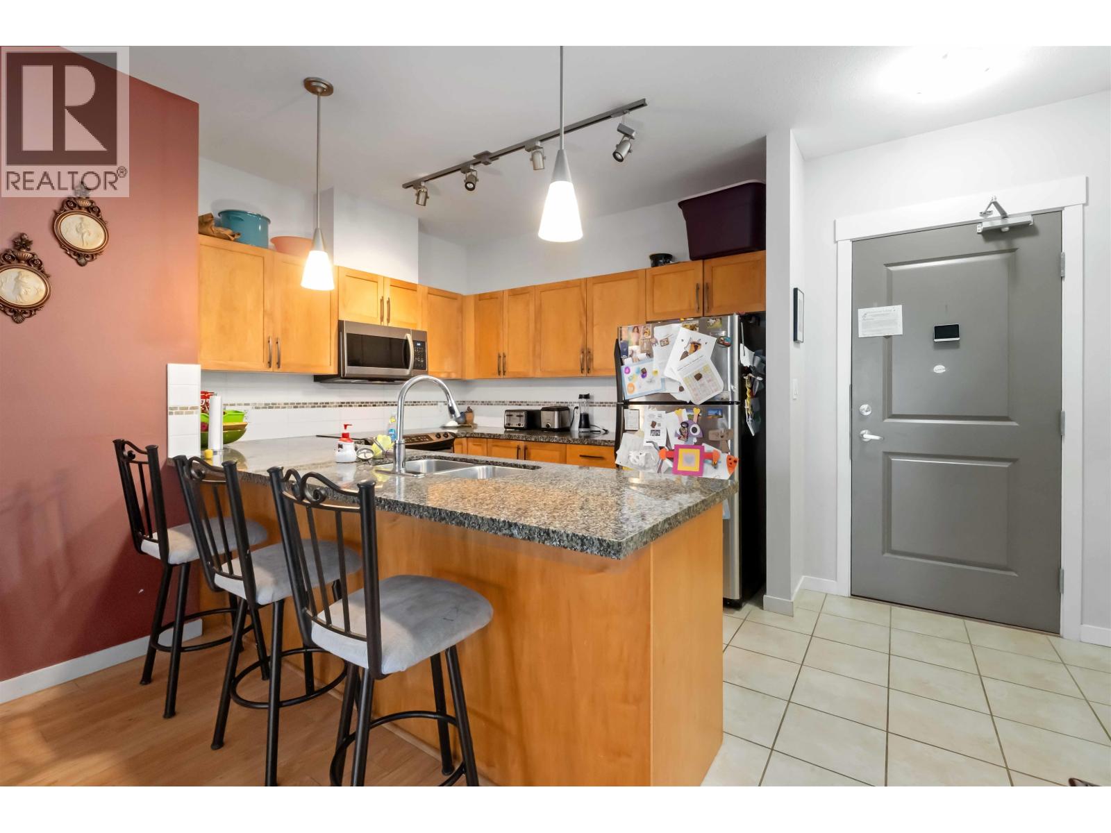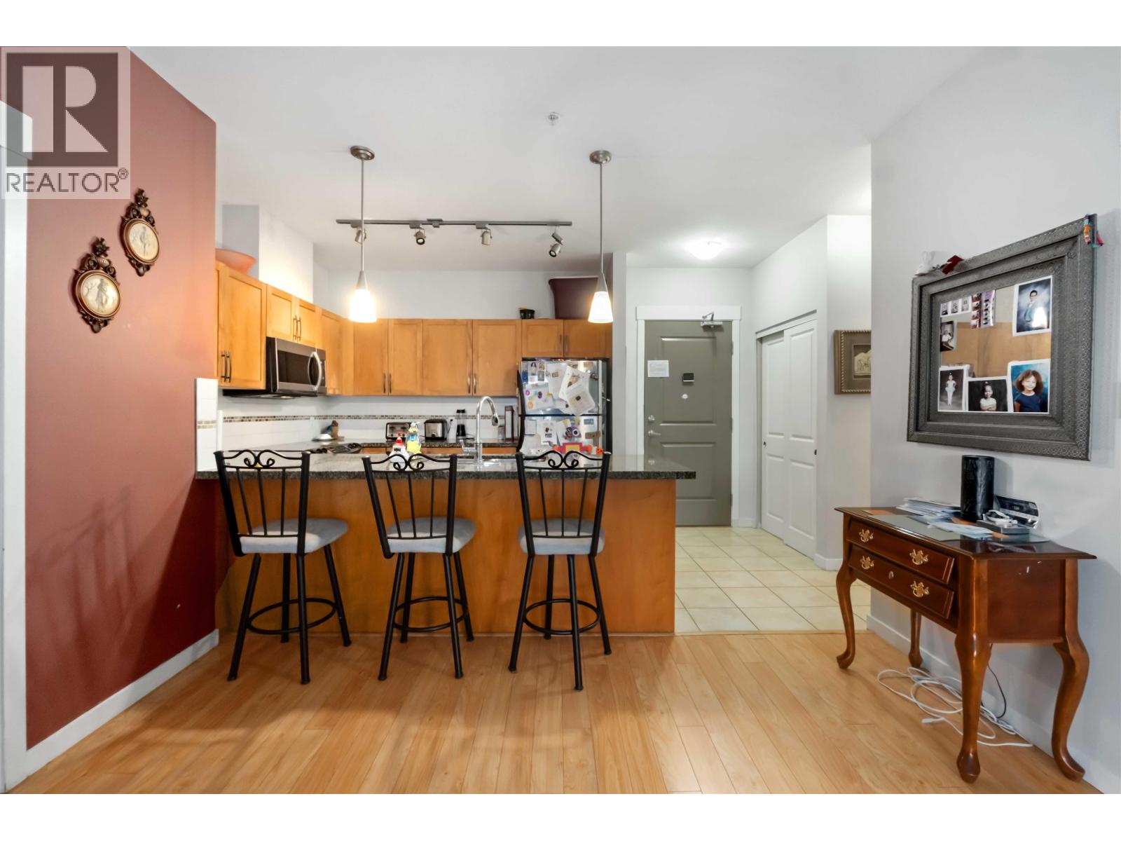 | FANTASTIC 2 BEDROOM + DEN, 2 bath home over 1000sqft, at KEYSTONE, a strata community in the heart of Pitt Meadows, close to schools, shopping, restaurants, recreation, and transit! Bright, well-designed layout features a spacious living rm with sliding doors to a covered balcony, cozy electric f/p, and dining area. The generous kitchen offers a breakfast bar, ample cabinetry, and great counter space. Primary bdrm enjoys balcony access and a full ensuite with soaker tub and separate shower. Roomy second bdrm, and a versatile den perfect for a home office or flex space. Stylish kitchen finishes include shaker-style cabinetry, granite counters, undermount sink, and stainless appliances with built-in microwave. Two underground parking stalls plus large bike storage room complete the package! (id:5347) | |||