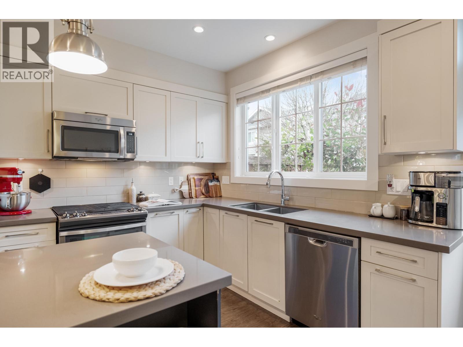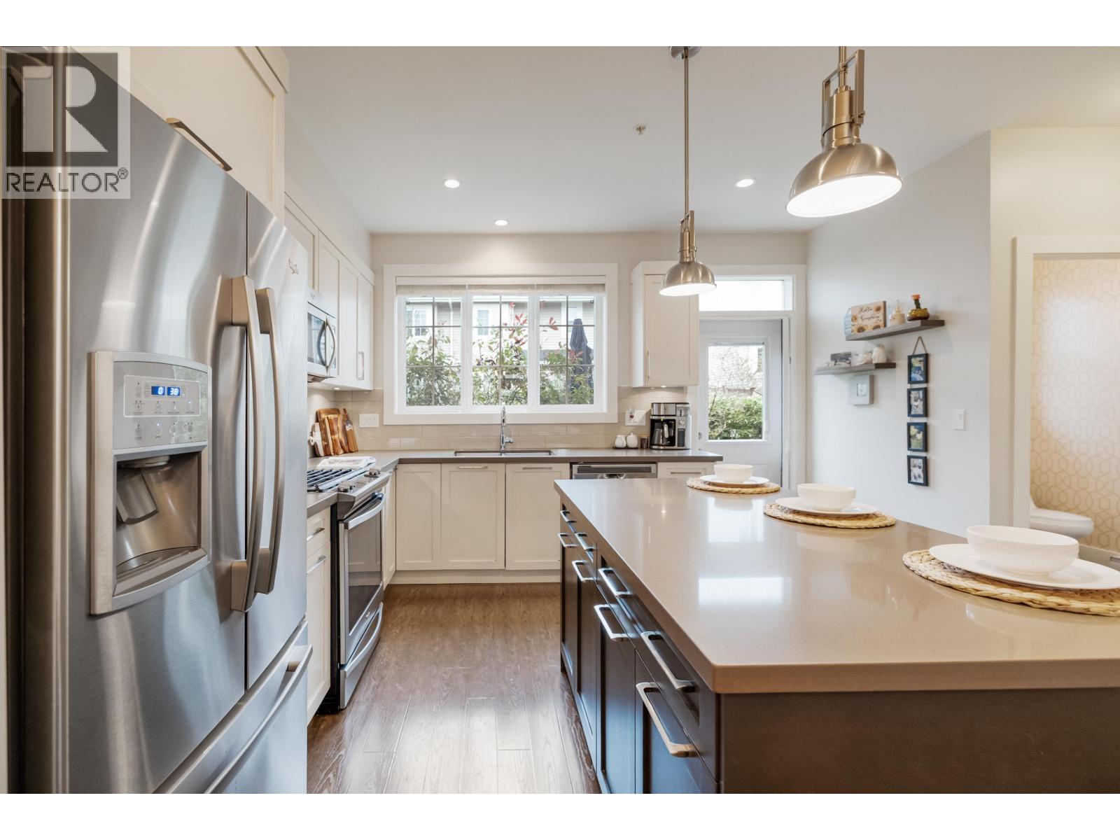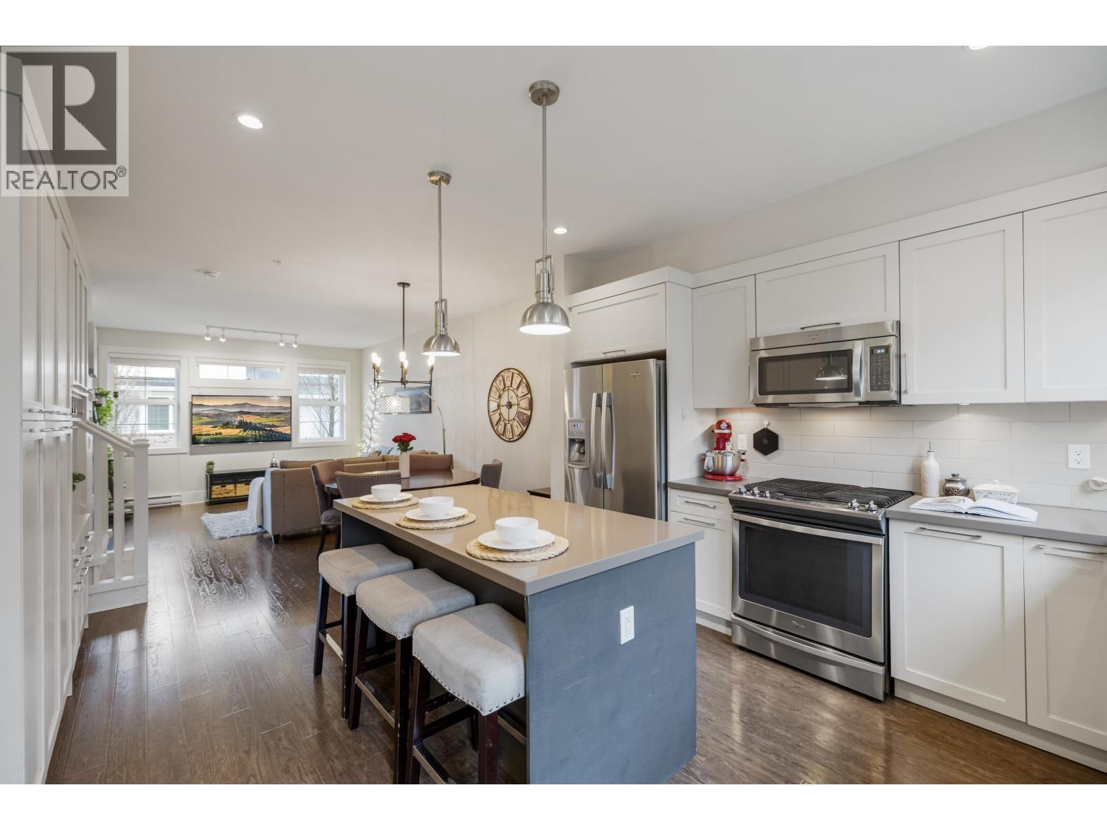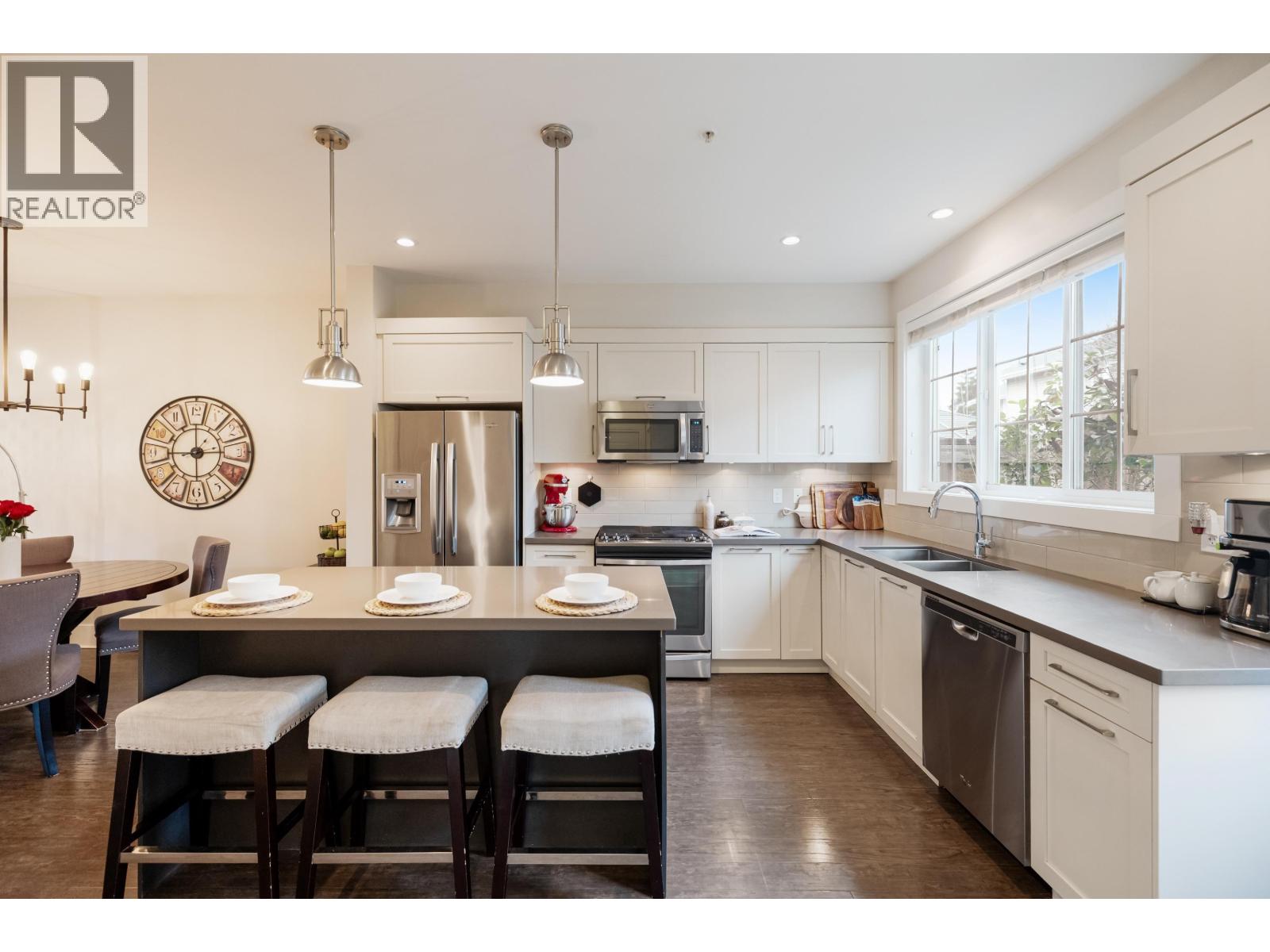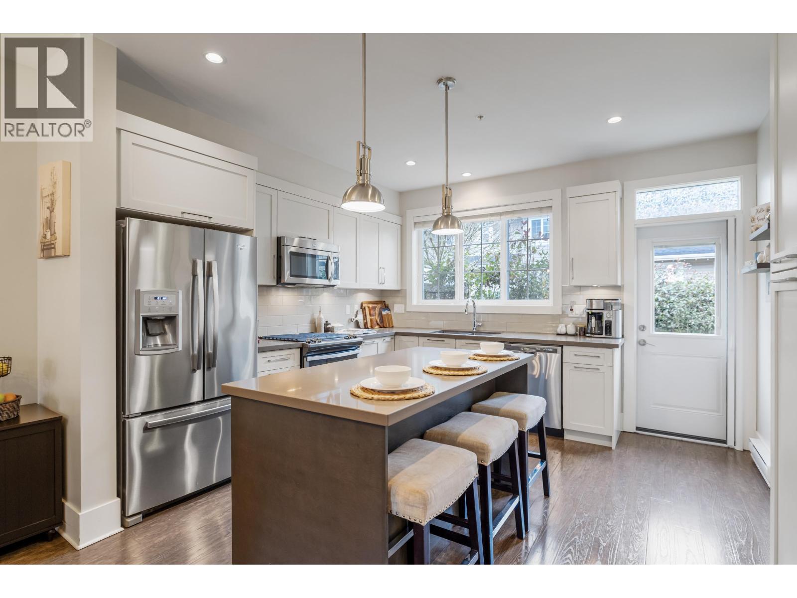 | TWO STOREY LIVING in sought after Village Green! This corner unit is perfect for entertaining, and the bright spacious open concept layout gives you that warm inviting feels the moment you walk through the door. Featuring 9-foot ceilings, a spacious kitchen with quartz counters, gas stove and an oversized island that overlooks the living and dining room makes this home ideal for social gatherings! Upstairs you´ll find 3 bedrooms, 2 baths and full-size laundry. The primary bedroom hosts an ensuite with an oversized shower with glass door and dual sinks. Other features include private driveway, storage, large fully fenced backyard with patio, gas hookup for the BBQ and a playground for kids. Located close to schools, transit and shopping. Open House Feb. 14, Sat 1-3 PM (id:5347) | |||