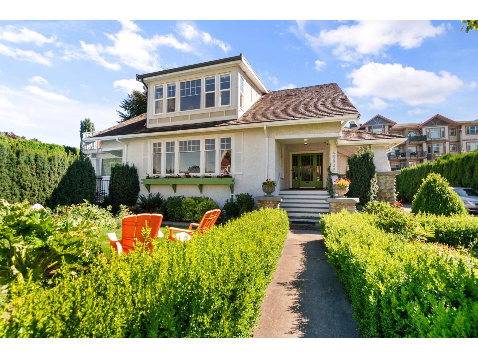 | Charming 1928 heritage home in the heart of downtown Chilliwack! This 3,500+ sq. ft. residence showcases its original character with hardwood floors, built-ins, prairie style windows, and a wrap around porch. Modem updates throughout, including a refreshed kitchen with stainless appliances and a timeless design. Sun room off of master could be great for an office or nursery. A recent addition upstairs features a bright I-bedroom suite ideal for extended family, or extra income. Heat pump upstairs. Large lot with over 1/4 acre of space, tons of parking, beautifully landscaped gardens, and a private yard set back from the road. Lane access at back. Multiple development opportunities here due to unique zoning (check with city). Lots of heritage value here as well as being located in the designated transit orientated area - affording it increased density for developers. A rare opportunity to own a piece of Chilliwack's history! (id:5347) | |||