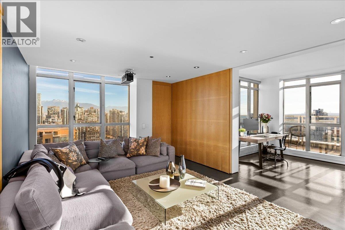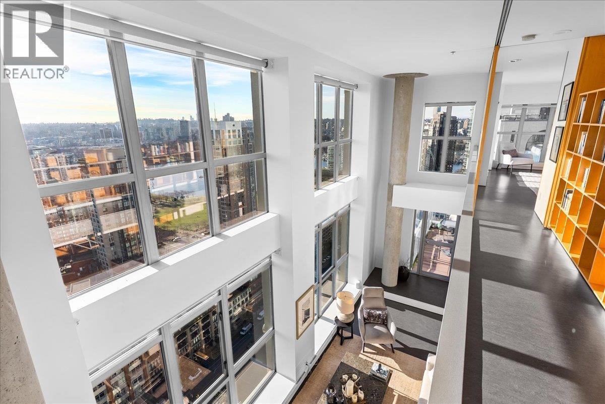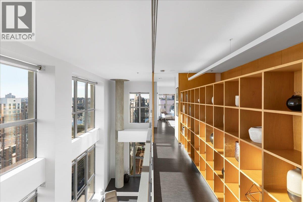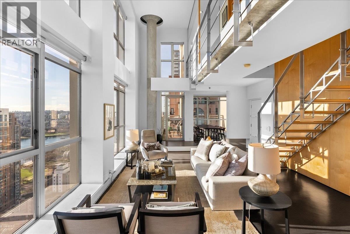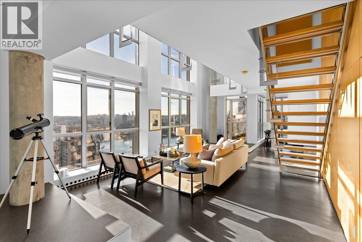 | World Class Penthouse at The Metropolis. Designed by renowned architect Peter Cardew. This is true piece of architectural history. The home blends smooth concrete and glass with organic metals and warm wood accents. Soaring 18 foot ceilings frame stunning city, mountain, and water views. The open concept layout features a large offset kitchen ideal for entertaining. A mezzanine walkway separates two bedrooms and a flexible space perfect for a home office or retreat. The spa inspired ensuite offers an oversized walk-in shower. Bespoke shelving, custom cabinetry, and a natural wood feature wall accent the dramatic floating staircase of metal, glass, and wood. A third bedroom or expansive media room with sliding walls completes the space. Expect to be impressed. (id:5347) | |||