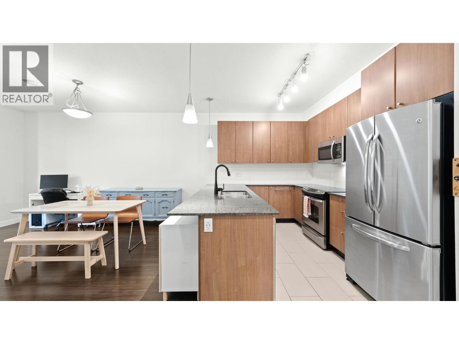 | The Grove - Onni's masterplanned community - Victoria Hill!Surrounded by greenery & steps to Historic Queens Park! Efficient open concept layout 1 bed plus den (second bed) 859sf w/oversized 317sf ground floor patio facing courtyard/green space! Spacious kitchen feat granite counters, tons of cabinetry, stainless steel appliances & large breakfast bar.Spacious living/dining that do not feel like a 1 bed condo! Beautiful primary suite w/walk through closet & 4 pce ensuite. Large 13x6 den on opposite side of unit easily functions as 2nd bed. Fantastic complex amenities: gym, party room, pool table, library, theatre room.Just steps to skytrain, downtown new west, Douglas College.In the complex: sushi & pizza restaurants, coffee shop & convenient store! 1 parking & 1 storage incl. OH: Sun 12-2 (id:5347) | |||