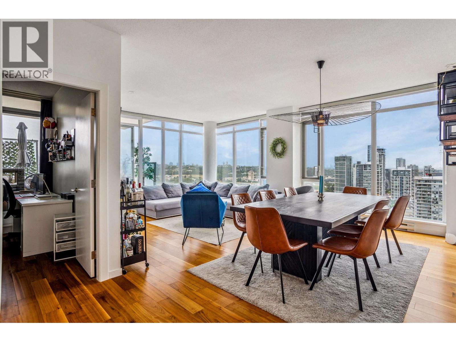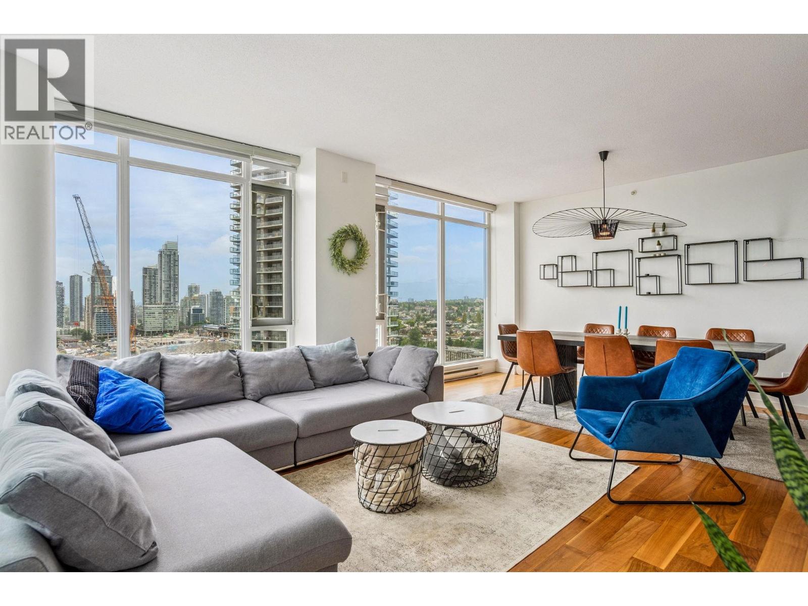 | This rare Sub Penthouse corner home in Brentwood offers 3 bedrooms, 3 bathrooms, and an impressive 1,347 square ft of well-designed living space. Enjoy spectacular southwest views from the oversized terrace, accessible from both the living room and primary suite. Inside, the open-concept layout features floor-to-ceiling windows, hardwood floors, and a sleek kitchen with granite counters, designer stainless steel appliances, and a huge centre island. The primary suite includes a walk-in closet and a spa-like 5-piece ensuite. With two parking stalls, a storage locker, and an unbeatable location just steps from Brentwood Town Centre, this sub-penthouse is the perfect blend of space, style, and convenience. (id:5347) | |||