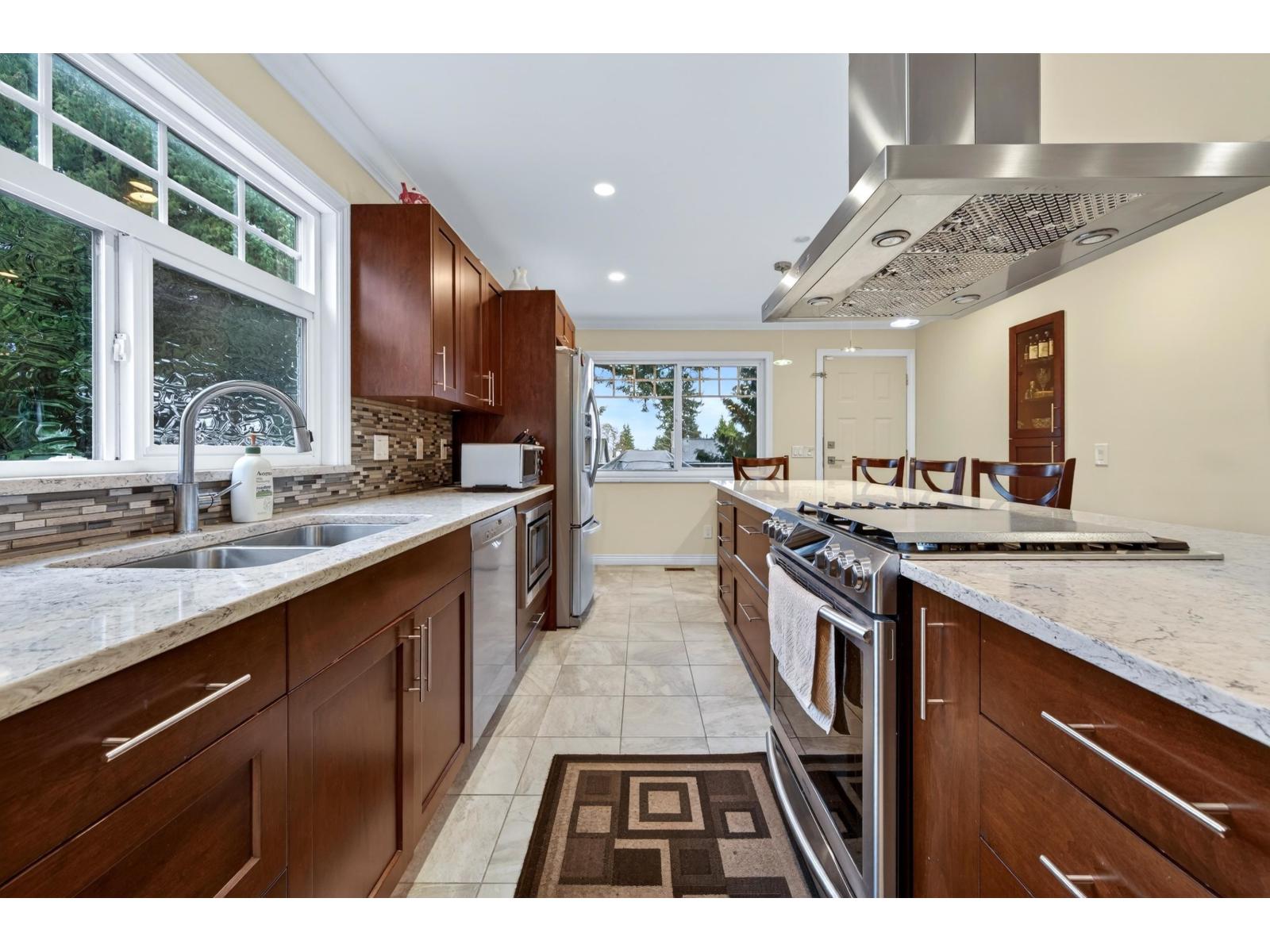 | Whoppertunity Here! Stunning Corner Lot 2-storey 4 bed & 3 bath Basement Entry style home in fabulous Guildford location. Loved & pampered by owners and in showhome condition. Love to Cook? This Kitchen sizzles LOADED with Cabinetry, SS appliances, massive island/work station & quartz counter tops with access to large deck overlooking backyard, perfect for Family BBQ's. Great room with feature wood f/p, 3 Spacious bdrms upstairs, all Bathrms renovated, Bsmt fully finished, featuring an exceptional 1 bdrm suite + a huge Games room for upstairs use. Superb family home & location. Back lane access accommodates 7-cars plus RV Parking! Walking distance to schools, shopping, transport, & bus stop just steps away. Bonus zoning indicates exceptional future potential. Looks great shows even better! (id:5347) | |||