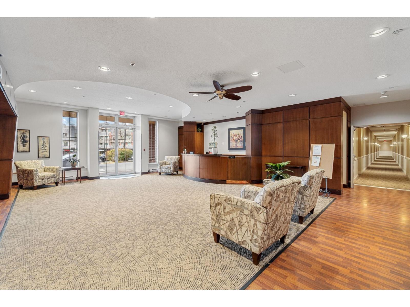 | Sought-after 55+ living in the heart of Walnut Grove, only ONE occupant must be 55! This spacious 2 bedroom + den, 2 full bath home offers over 1,200 sq ft of bright, functional living. Generous living and dining areas flow beautifully, with a versatile den perfect for a home office or hobby space. Step outside to the HUGE balcony, an incredible outdoor extension of your living space with room for full patio furniture, planters, and relaxed entertaining. Well-managed, re-piped building with concierge service, media room, lounge with fireplace, exercise room, underground parking, rooftop patio, gardens & BBQ area. Walk to Thunderbird Village, medical clinics & restaurants. Resort-style living with a true sense of community! (id:5347) | |||