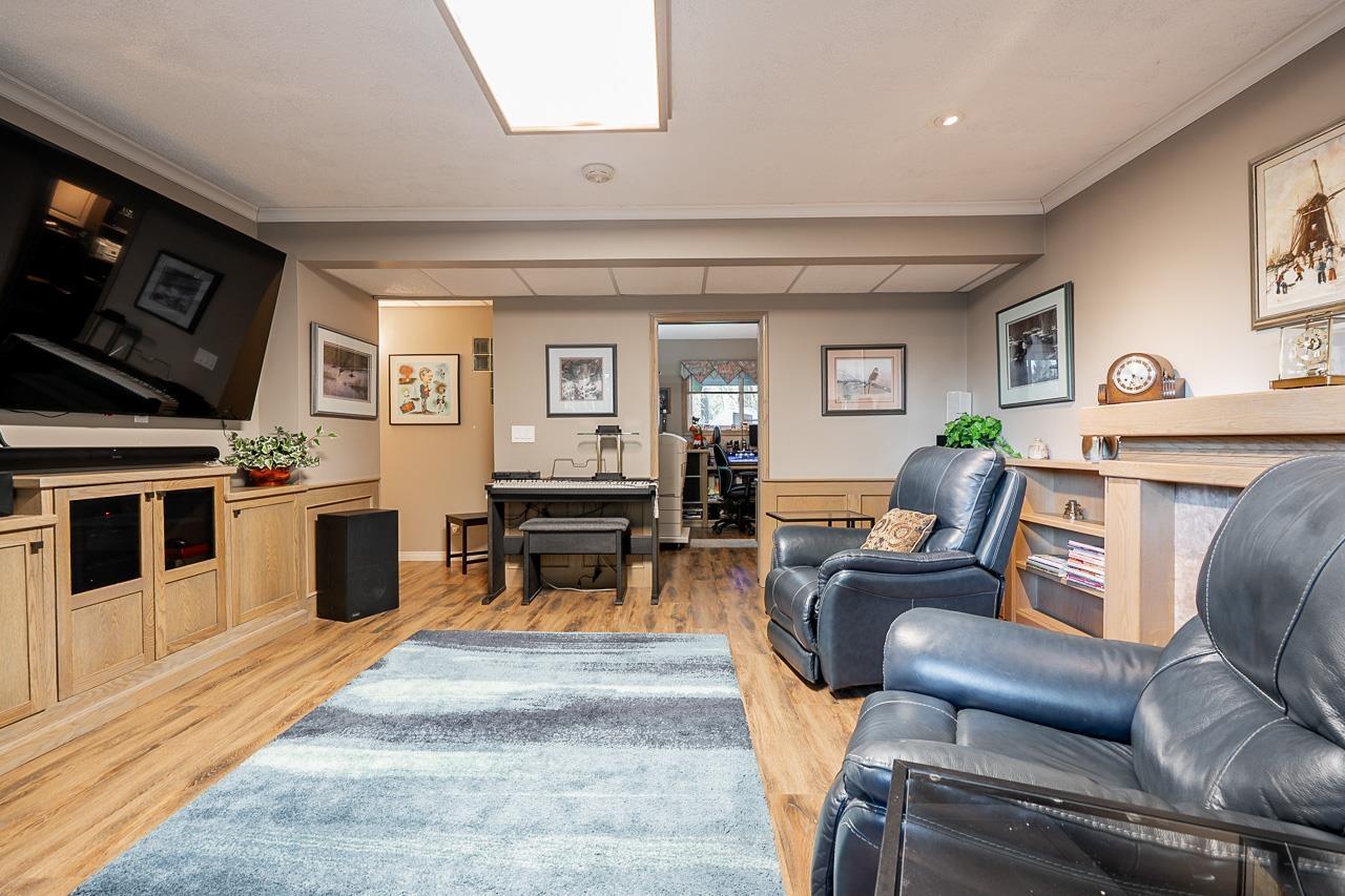 | Offered by the original owners, this pristine basement entry home is tucked away on a private street backing onto serene greenspace. The interior features two large living areas with gas fireplaces, updated eat-in kitchen, formal dining area & 4 bedrooms. Extensive quality updates have been done for you through the years, including a 40year roof, windows, furnace, hot water tank, and a high-efficiency heat pump for year-round comfort. The backyard is a spacious, park-like setting that blends seamlessly with the natural forest backdrop. The property also boasts a large powered shed, built-in irrigation, and an oversized 32' garage with plus additional parking. (id:5347) | |||