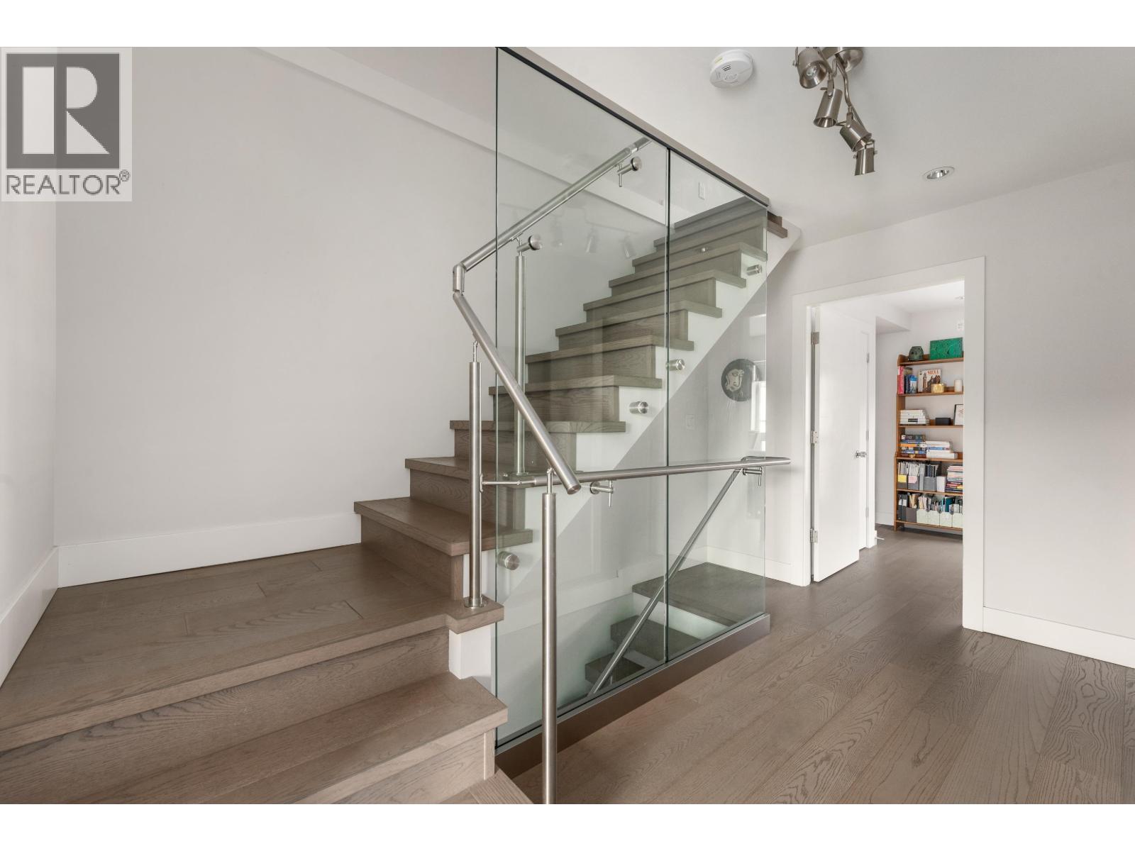 | Welcome to 147 St. Patrick´s Avenue in the heart of Lower Lonsdale. This stunning 3-bed + den, 2.5 bath, 1452sqft townhouse offers crisp design and a huge rooftop patio (an additional 320sqft!) with sweeping city & ocean views. Upon entering you´re greeted by refined finishes and floating stairs framed by glass, providing a feeling of modern luxury. The main level features a bright, open-concept living and dining area with sunny easterly exposure, seamlessly connected to a gourmet kitchen. Upstairs offers 2 spacious bedrooms, a full bath & laundry, while the top floor provides the primary suite, ensuite & a versatile den. Enjoy the ultimate LoLo lifestyle close to the Shipyards, breweries, shops, restaurants, rec centre, seawall & just a 14-minute walk to the Seabus for an easy DT commute. Open House Sunday March 1st, 11am - 1pm. (id:5347) | |||