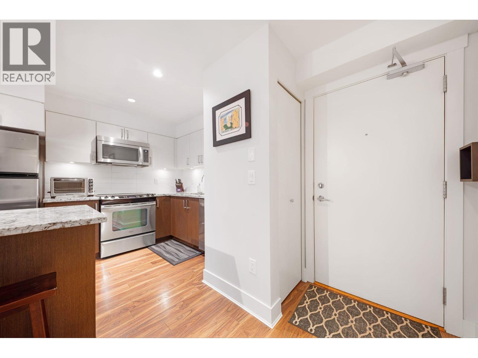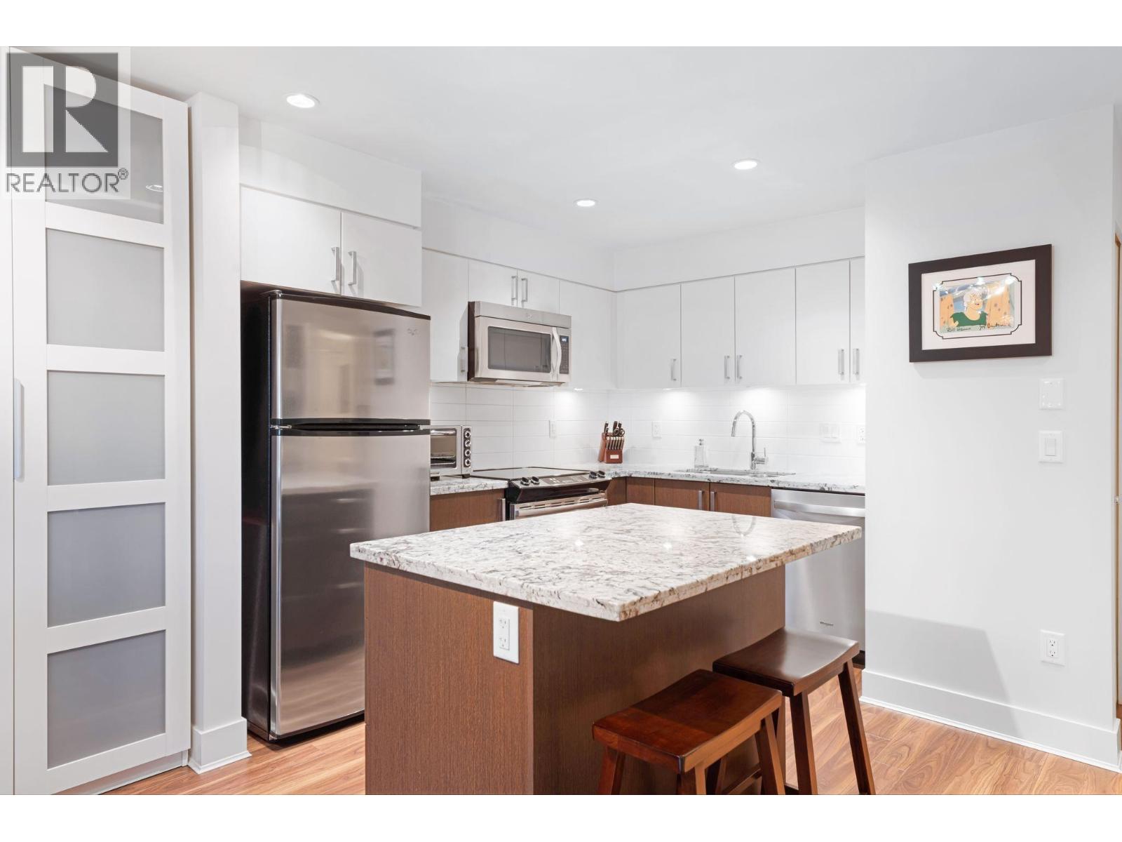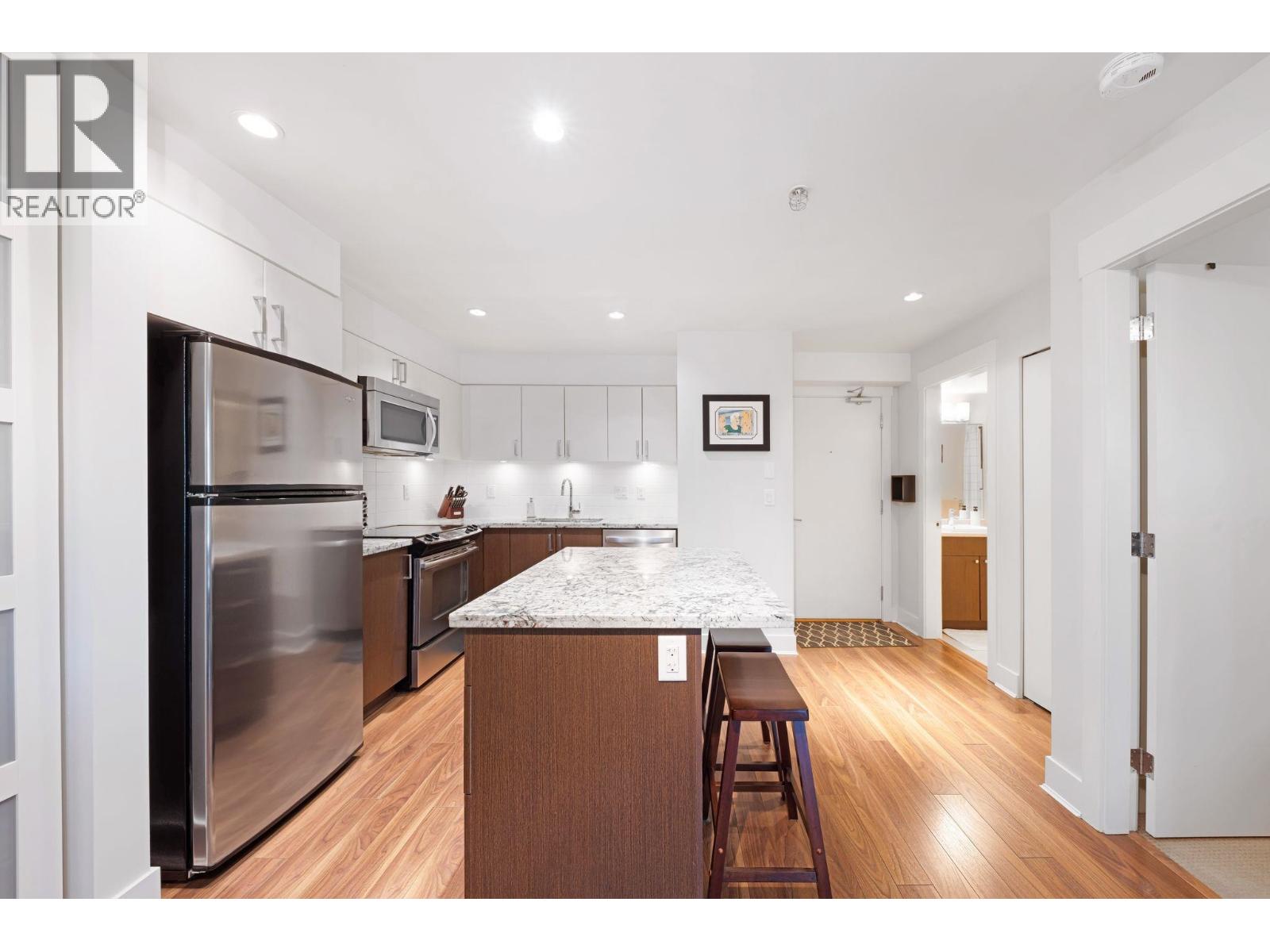 | Welcome to Eight West! This bright and stylish 1-bedroom condo offers an open-concept layout with a modern kitchen, granite countertops, stainless steel appliances, and a spacious island perfect for casual get togethers. Plenty of room for that dining room table too! Immaculately kept, all you need to do is move in. Enjoy a large covered balcony perfect for relaxing or entertaining. This home also features in-suite laundry, secure parking, and separate storage. Full rentals allowed. Building was built in 2012/2013 and has been well maintained ever since. A walk score of 86 means it's conveniently located near shops, schools, parks, and transit. OPEN HOUSE SUNDAY FEB 22nd 1-3PM (id:5347) | |||