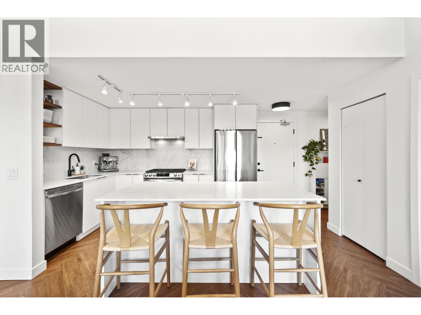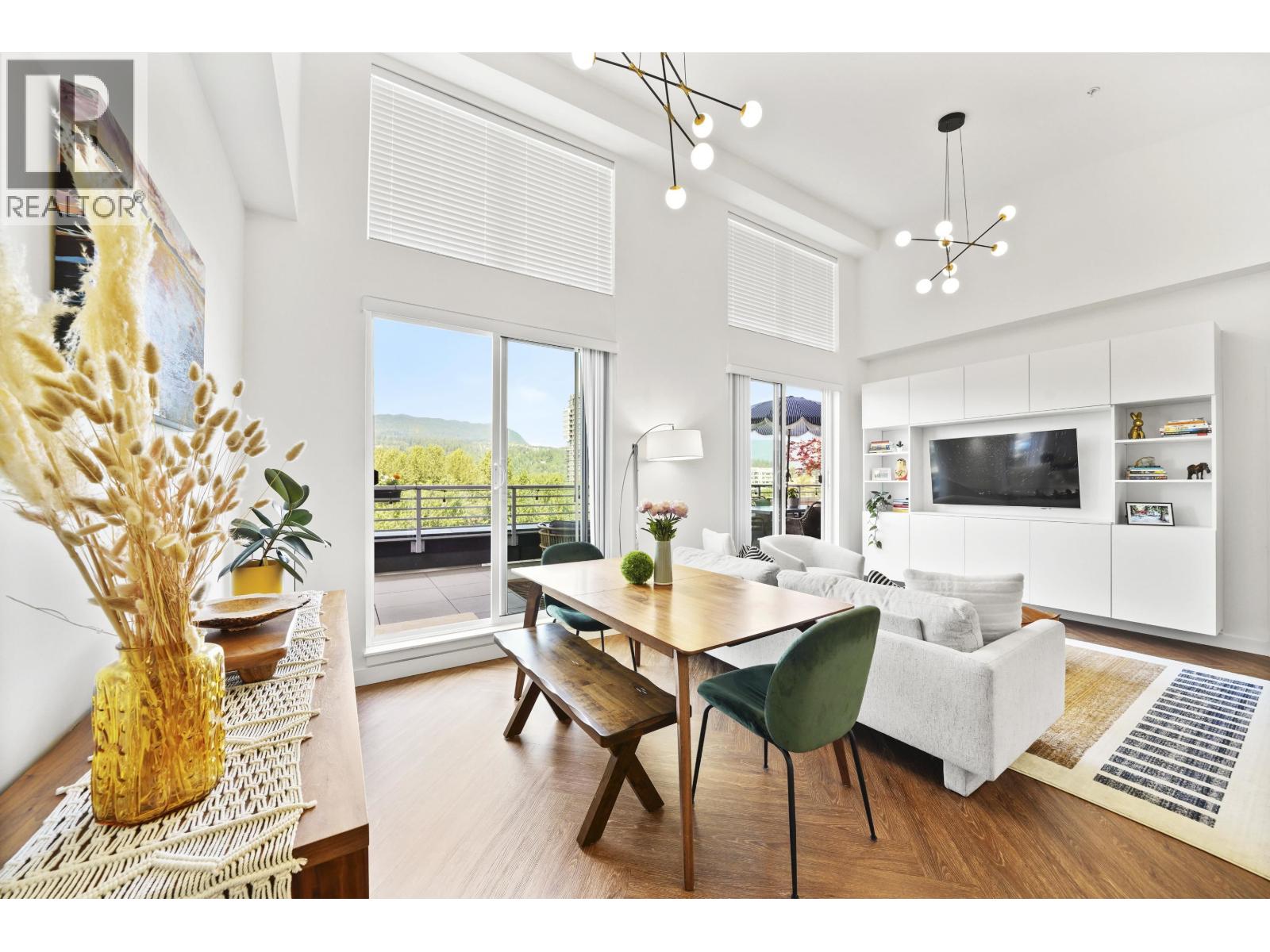 | Welcome to THE CLYDE, located in the vibrant heart of Port Moody! This rarely available penthouse offers 2 bedrooms + den, 2 bathrooms, & an expansive 500 square ft outdoor balcony, perfect for entertaining. The light-filled, open-concept layout boasts 14 ft ceilings & 946 square ft of modern living space, a stylish white kitchen with quartz countertops, a large island, & elegant vinyl herringbone flooring. The spacious primary suite includes a walk-in closet & a private en suite & a generously sized second bedroom also features a walk-in closet. The massive patio seamlessly extends your living space outdoors. Bonus features 2 side by side EV ready parking, 3 storage lockers & 2 pets welcome! Steps away from Inlet Station, shops, cafes, transit, and the best of Port Moody living! Open House CANCELLED FEB 22 (id:5347) | |||