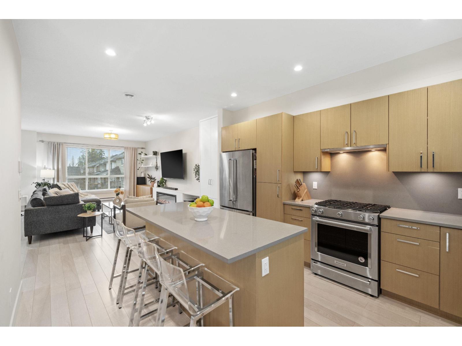 | Welcome to this beautifully maintained townhome in sought-after Hudson. Walk to Orchard Grove Park and Grandview Aquatic Centre, just two blocks to Grandview Heights Secondary and minutes to Morgan Crossing. Peek a boo view of the North Shore Mountains from your living room and master bedroom. Bright and spacious with 4 bedrooms+3.5 bathrooms, this home features 9' ceilings and large windows on the main floor. Brand new built-in cabinets provide excellent storage and functionality. The kitchen offers a large island with ample counter space and a convenient powder room on the main. Upstairs, the primary bedroom includes a walk-in closet and ensuite with double sinks and a frameless glass shower. 4th BDRM & BATH in the BSMT, new HWT, double garage & fully fenced yard. (id:5347) | |||