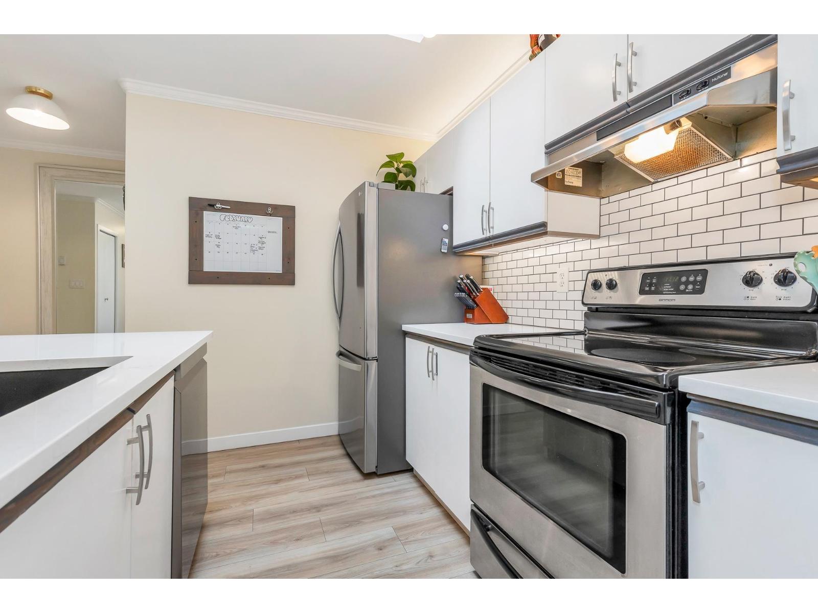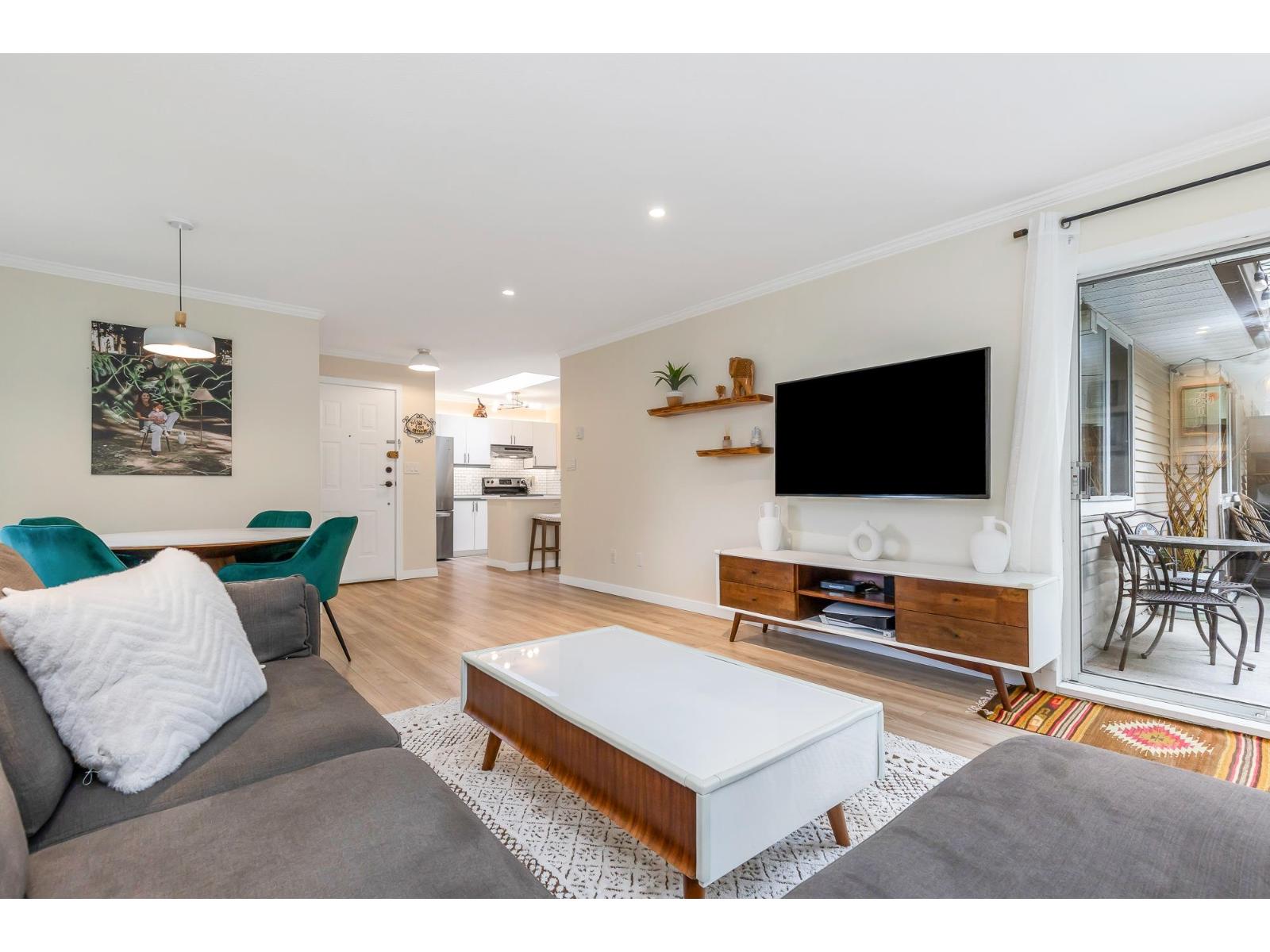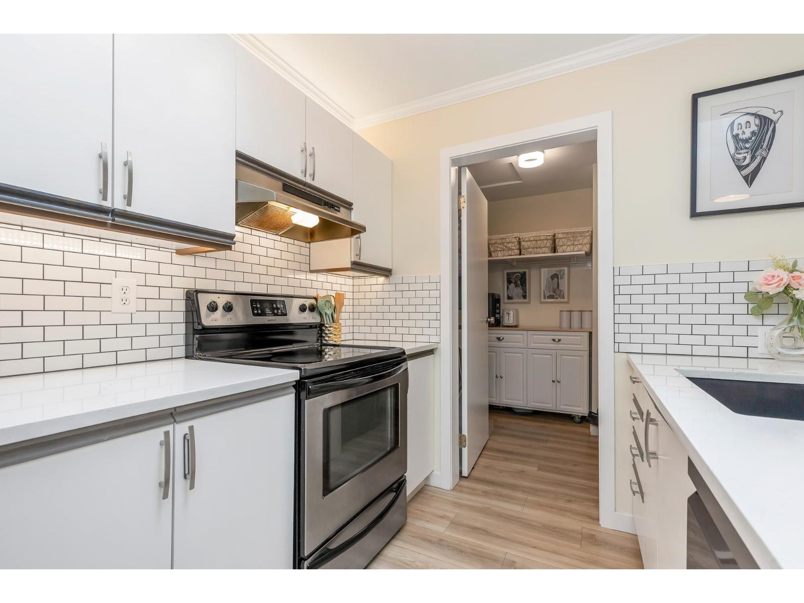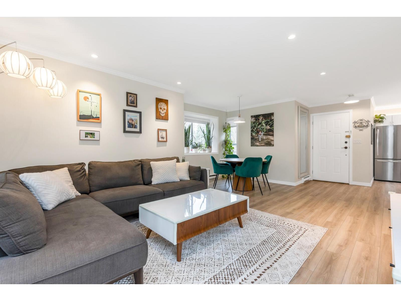 | Top corner townhome with a bright open layout. Lots of windows and 2 skylights for plenty of natural light. Stylish updates throughout including designer colours, newer flooring, quartz counter tops, stylish backsplash, crown mouldings and pot lights to mention a few. Spacious walk-through closet with cheater ensuite access. Private balcony overlooking treed area. Park is 1 block away and easy access to Hwy 1 and the pedestrian overpass to UFV. Pet friendly with no age restrictions. Nothing to do here but move in and enjoy! 2 parking spots available. 1 cat or 1 dog max 25lbs (id:5347) | |||