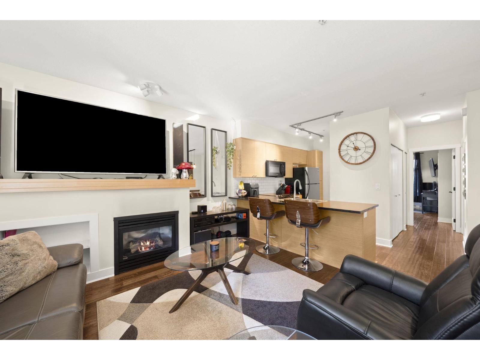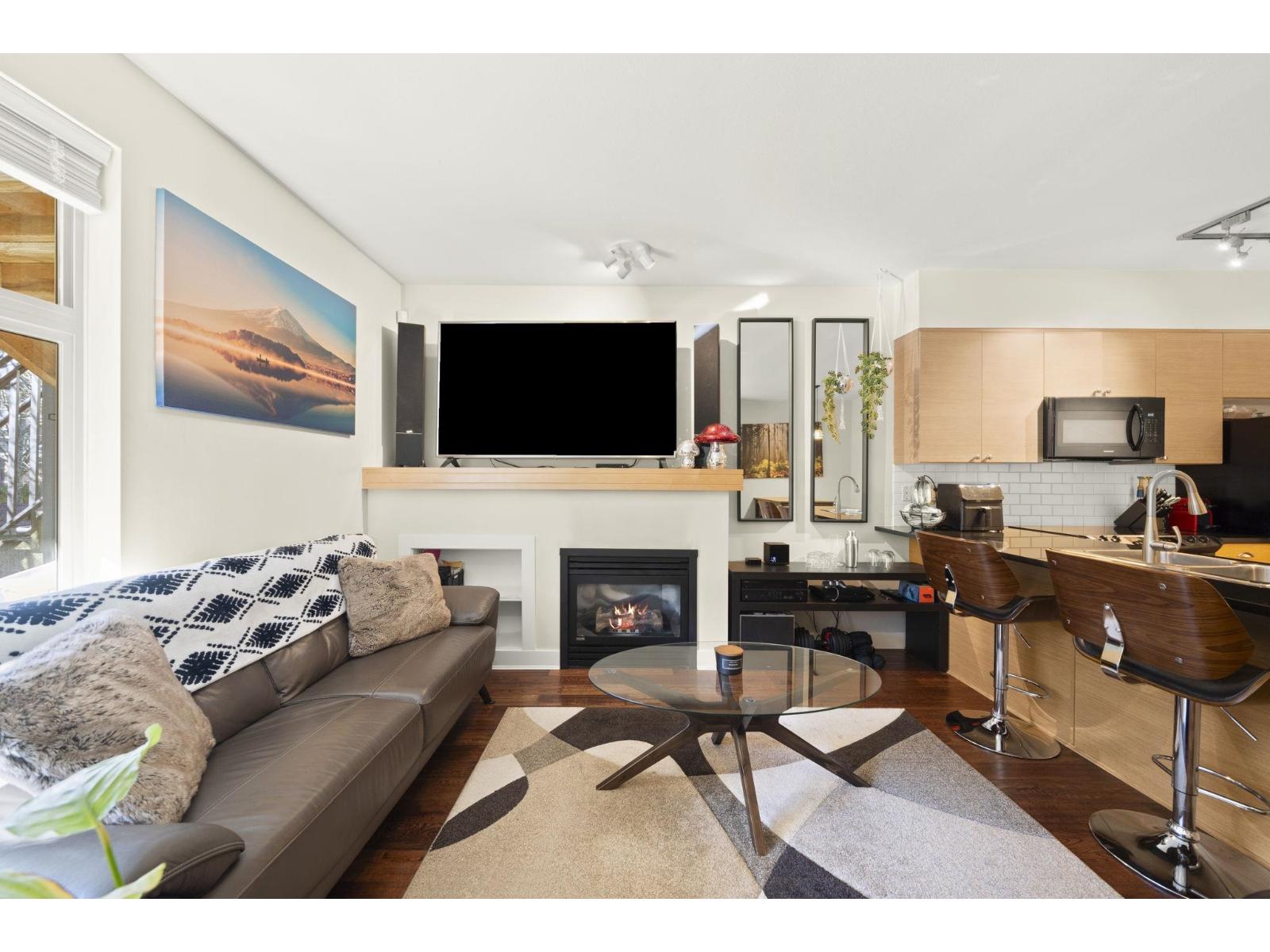 Patio lovers must see! Spacious one bedroom townhome by award winning Solterra Group. Gourmet kitchen with S/S appliances, granite counters and island with breakfast bar. Living room boasts cozy natural gas fireplace. Master bedroom backs onto patio and has double sinks in ensuite and radiant heated tile floors. 2 generous sized garden fenced patios for outdoor entertaining. One patio has easy acces to sidewalk or the other has inner courtyard exposure, perfect or pet owners or if you cherish your own outdoor space. Full size Washer and dryer included. One parking spot in secure underground parkade plus locker. Low strata fees which includes gas and pro-active council. Call today! Open House Sunday Feb 22nd 1-3pm (id:5347)