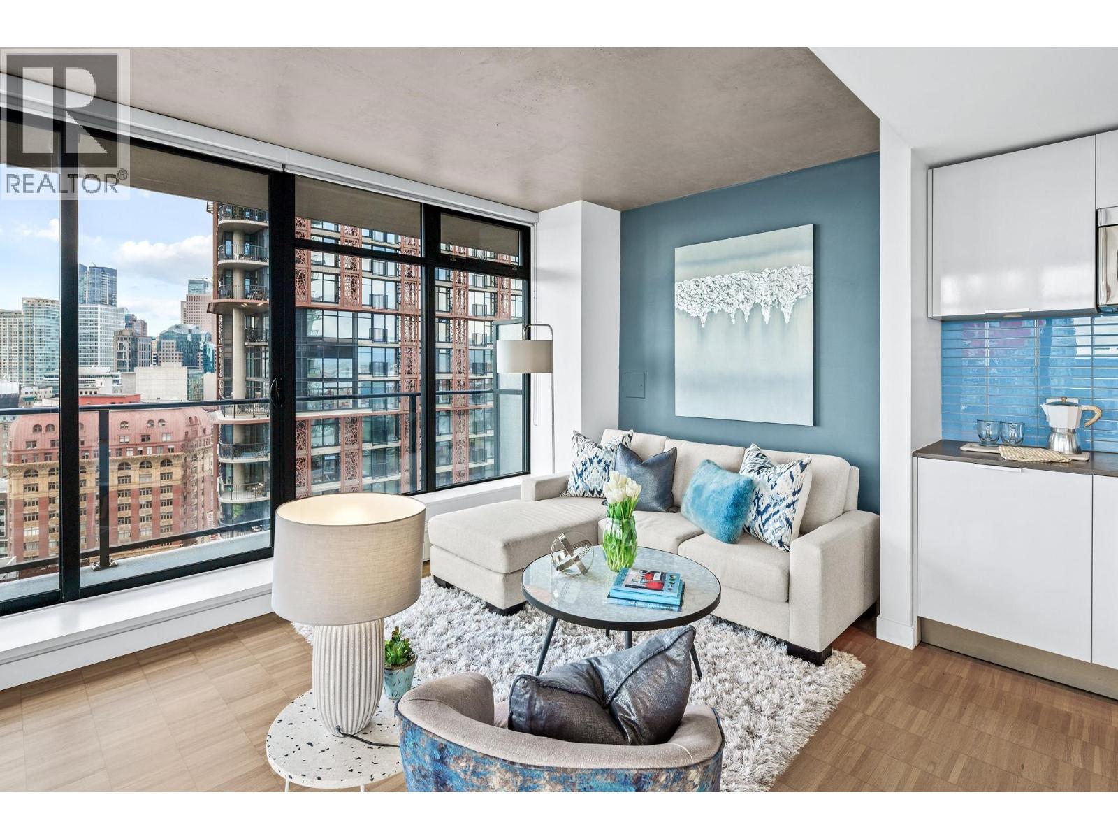 | Sweeping south-west 270° views highlight this rare corner residence with a wraparound patio and iconic sightlines, including the celebrated "W." One of the most coveted floorplans in the building, this nearly 750 square ft home offers elegant open-concept living with views of the city, False Creek, and the inlet. The modern kitchen features stone countertops, high-gloss cabinetry, and premium AEG/LG appliances. Private bedroom with custom California Closets and a spa-inspired 5-piece bath. Rooftop amenities include party rooms, outdoor dining, hot tub, and gym. OPEN HOUSE SAT, FEB 21ST FROM 12-3PM! (id:5347) | |||