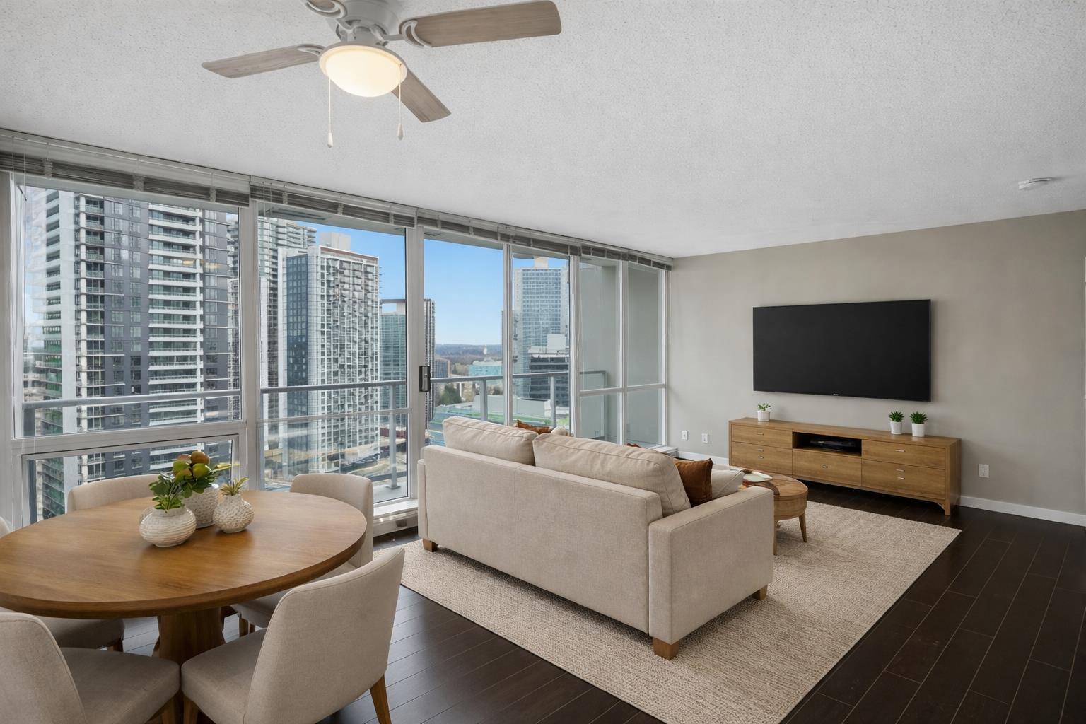 | Welcome to Infinity Tower - a bright SE-facing 1 Bed, 1 Bath condo offering 613 sqft of functional, open-concept living. Floor-to-ceiling windows flood the space with natural light while showcasing stunning city views. The thoughtfully designed layout features a seamless dining & living area, creating an airy & inviting feel. Exceptional amenities include a 24-hour concierge, fully equipped gym, impressive 34th-floor amenity room, & visitor parking. 2 pets and rentals allowed - perfect for first-time buyers or investors. Unbeatable location steps to King George SkyTrain Station, Central City Shopping Centre, Holland Park, Surrey Memorial Hospital, SFU, & the future UBC campus. Experience true urban village living with shops, cafés, and daily conveniences right at your doorstep! Some photos contain virtual staging. (id:5347) | |||