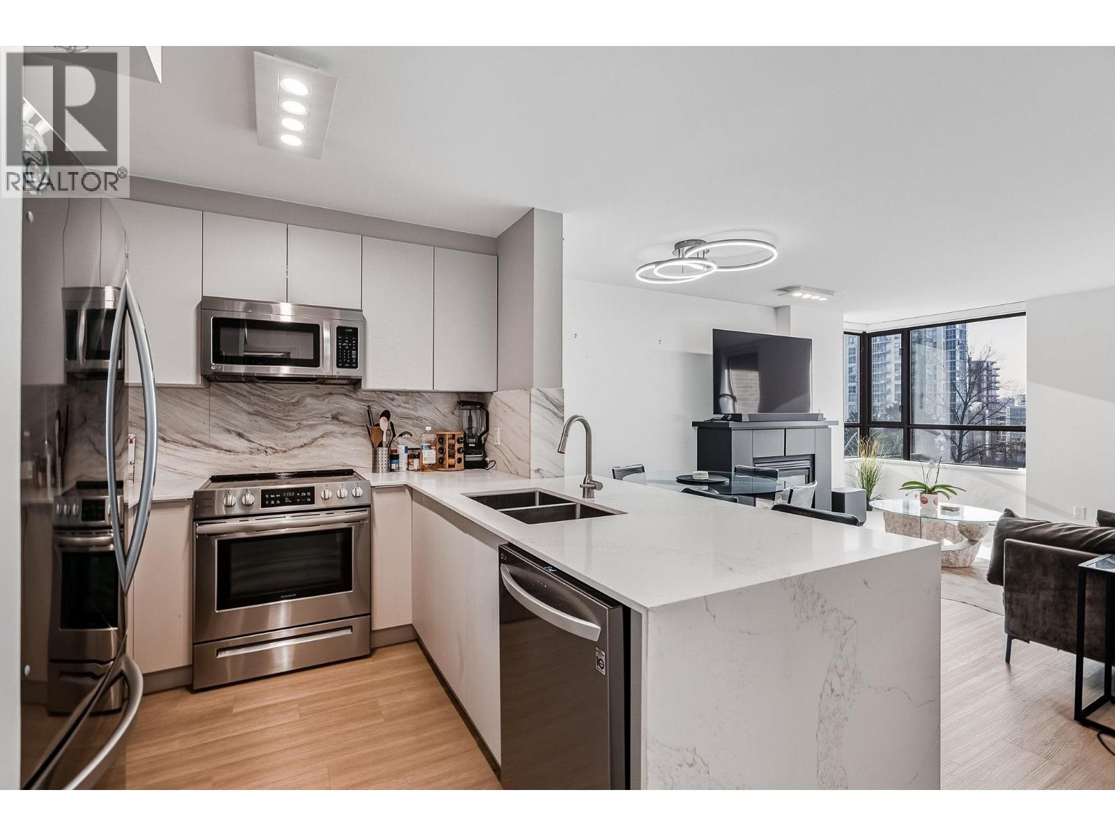 | STUNNING FULLY RENOVATED extra-large 1 bed, 1 bath + den + solarium in this highly sought-after, Bosa-built concrete high-rise! Complete top-to-bottom renovation - nothing left untouched. GORGEOUS kitchen with high-end EuroRite cabinetry, quartz countertops & elegant marble backsplash. LUXURIOUS bathroom with heated tile floors for year-round comfort & deep soaker tub. Beautiful LVP flooring throughout, updated lighting & all new appliances & fixtures. Custom closets maximize every inch of space. Solid concrete construction means peace & quiet in your urban retreat. UNBEATABLE LOCATION directly across from Sunset Beach - enjoy walking the sea wall, stunning sunsets & the best of downtown living steps from your door. This is move-in ready perfection. One parking. Pets OK! Don´t miss it! (id:5347) | |||