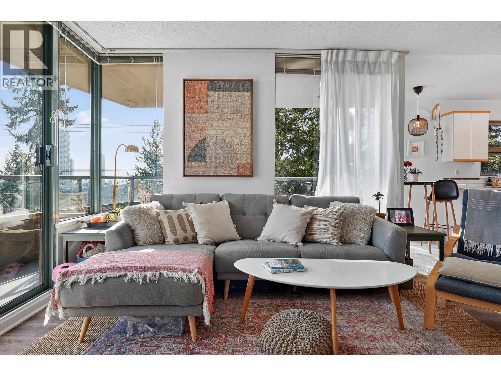 | SE corner suite in The Dunhill! This spacious 2 bedroom, 2 full bathroom home offers an exceptional layout featuring laminate flooring, a cozy gas fireplace, updated appliances in 2022 and a large formal dining area perfect for entertaining. Floor-to-ceiling windows fill the space with natural light. Step onto the covered wrap-around balcony and enjoy panoramic views year-round. Includes in-suite laundry and storage plus a storage locker. Great location steps to Edmonds Station & Highgate Village. OPEN: Sat. Feb. 21st 2:00 - 4:00PM (id:5347) | |||