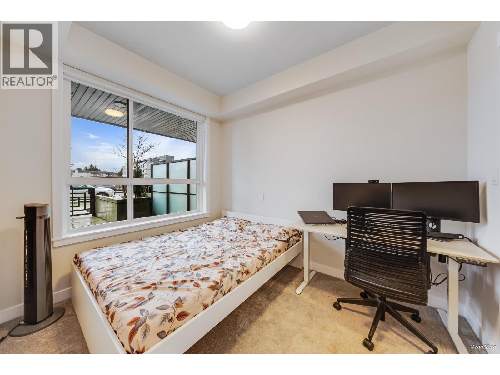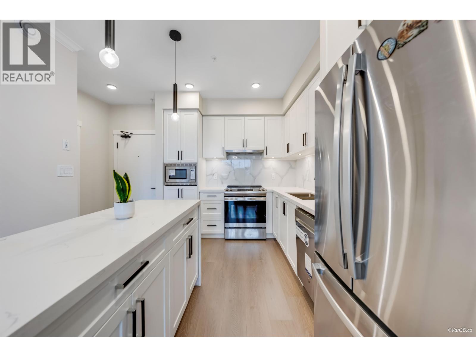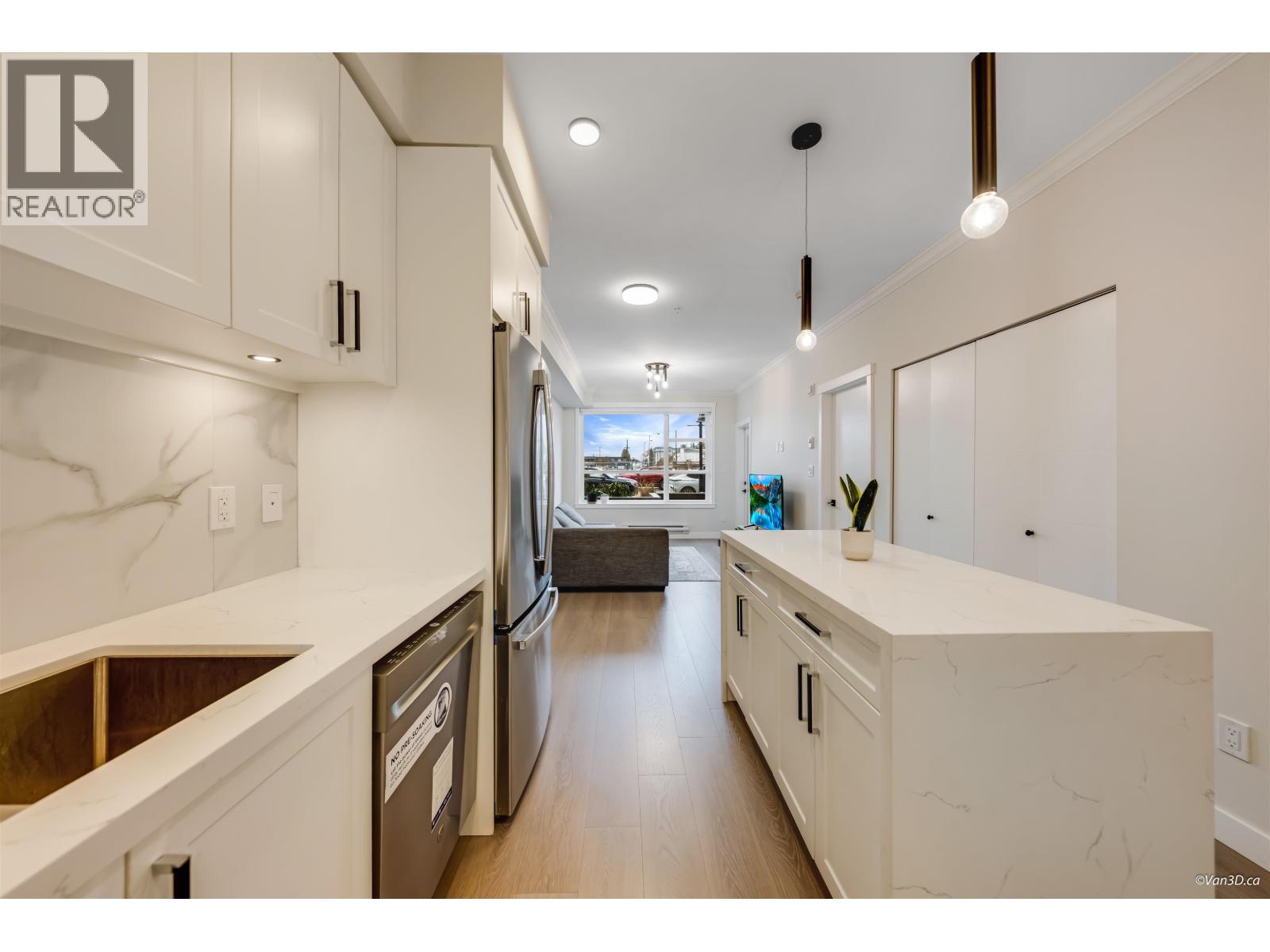 | Enjoy new construction without the GST! This bright 1-bedroom, 1-bathroom home offers a modern open-concept layout featuring white quartz countertops, Italian tile backsplash, stainless steel appliances, durable laminate flooring, and soft carpet in the bedroom. Roughed-in for A/C for added comfort. Residents enjoy premium amenities including a fully equipped gym, yoga studio, social lounge, rooftop outdoor spaces, play area, and game room. Includes 1 parking stall and 1 bike/storage locker conveniently located nearby. Centrally located near shopping, transit, schools, parks, medical services, and Downtown. The ground-floor patio with a private street gate provides extra outdoor space and easy access for dog walking. (id:5347) | |||