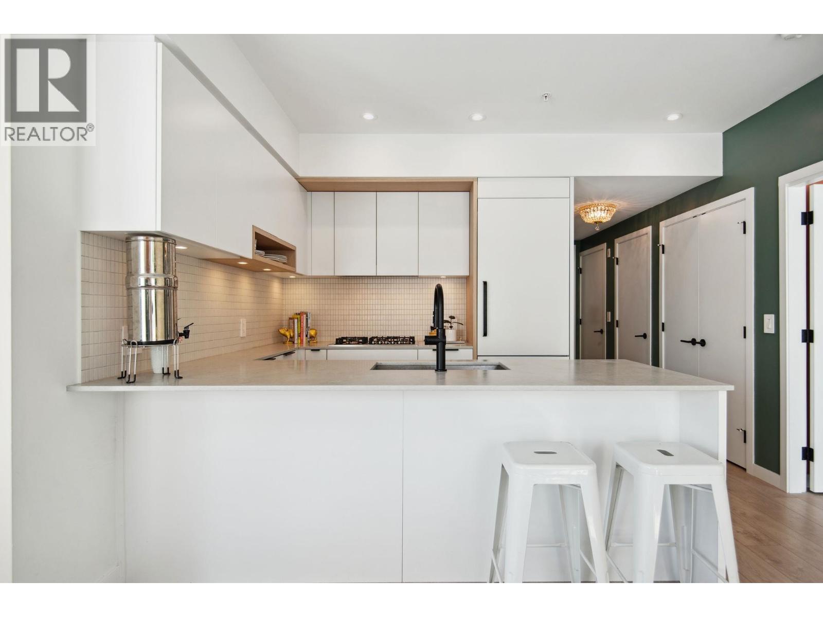 | Welcome to Habitat by Porte Developments, an urban oasis in the heart of vibrant Mount Pleasant. This south-west corner 2-bed, 2-bath home by award-winning Formosis Architecture offers high 8'8" ceilings and a bright, modern design. Features include laminate flooring, matte cabinetry, quartz countertops, under-cabinet LED lighting, matte black fixtures, and integrated Fulgor Milano appliances. Enjoy a private balcony off the living room and second bedroom. The primary bedroom includes a spa-like ensuite and the spacious second bedroom is perfect for your little ones or a home office. Residents enjoy a rooftop lounge with BBQs, dining areas, seating, fire pits, and a communal lounge/office space. Steps to transit, shopping, and top Mount Pleasant restaurants. O/H: Feb. 21st & 22nd, 1-3PM (id:5347) | |||
