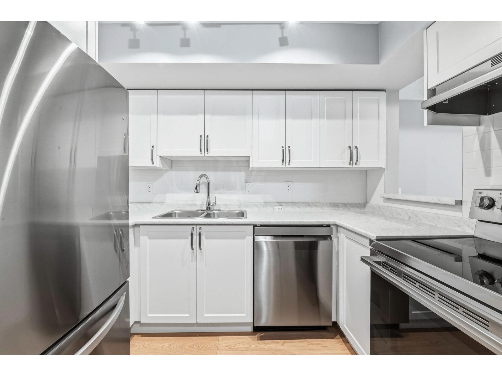 | Ground Floor unit located at Claridge Court and steps to transit, parks and all amenities.This rare 2 bdrm unit has been RENOVATED and shows beautifully! An open floor plan featuring updated WHITE kitchen,new counters, tile backsplash and stainless steel appliances.Private patio,updated vinyl plank flooring throughout, gas fireplace,Primary bdrm w/walk in closet,oversized laundry room, new blinds, new baseboards and more..one storage locker and secure underground parking. Rainscreened building and recent New Roof.Ideal for 1st time buyer or great investment to rent out.Don't wait or you'll miss out! (id:5347) | |||