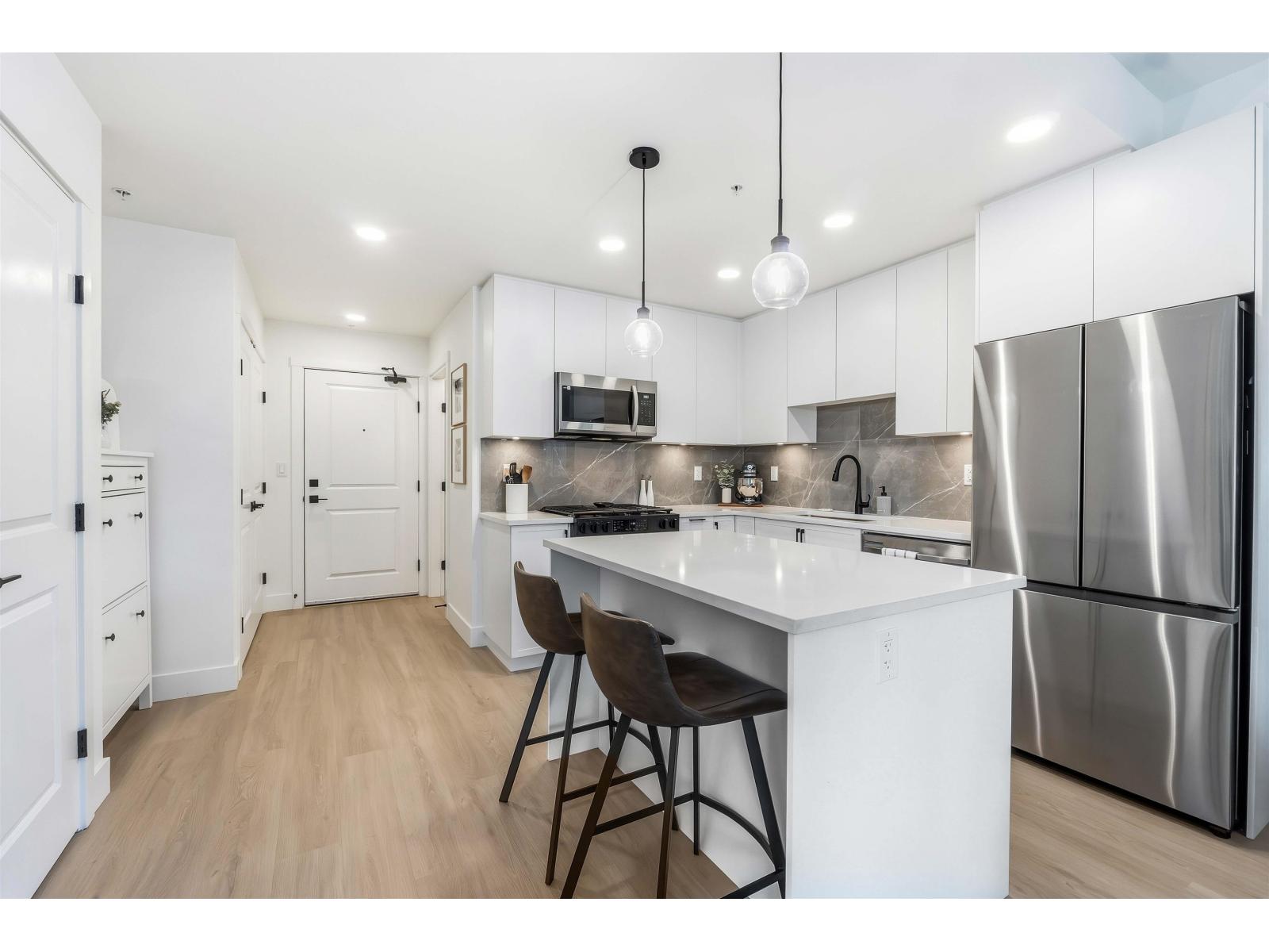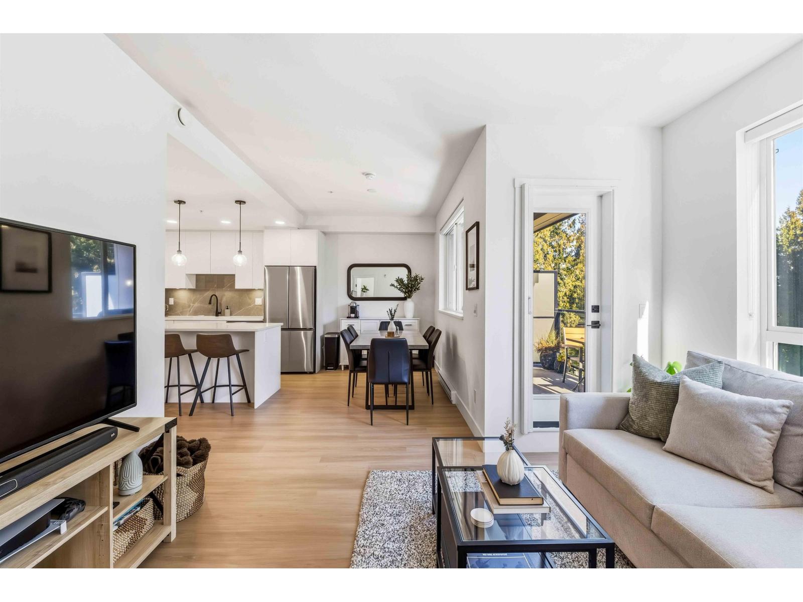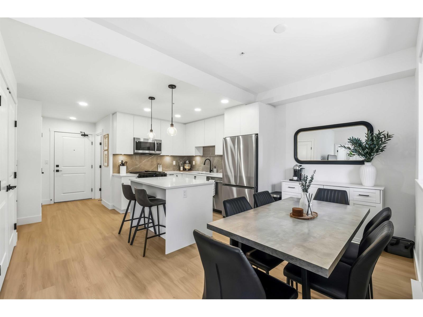 | BEAUTIFUL and generously sized 1-bedroom condo with highly sought-after and UNIQUE floor plan featuring 2 FULL BATHROOMS at King & Crescent! One of the most desirable 1 bedroom layouts in the complex, with designated dining and living room spaces perfect for both everyday living and entertaining. Perfectly positioned within the building, this home backs onto a neighbouring greenbelt, providing complete privacy and a peaceful, natural backdrop to enjoy year-round. Retreat to the oversized bedroom with walk in closet. Lastly, a true bonus for condo living, easily accessible side-by-side washer and dryer with added storage. Located just minutes to the HWY, shopping, restaurants, Crescent Beach, and more. An exceptional opportunity for first-time buyers or investors. This one is a MUST SEE! (id:5347) | |||