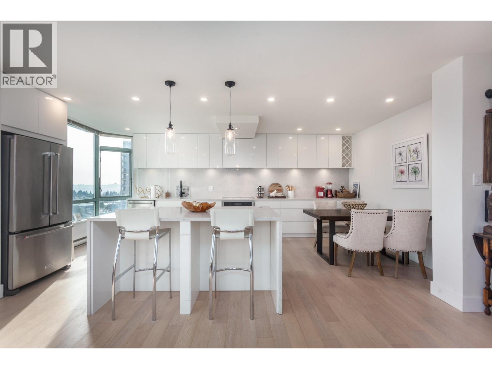 | Fully renovated PENTHOUSE at Springhill Place with gorgeous mountain and water views from the kitchen. This suite has over 1,175 sf. of bright living space with floor to ceiling windows and beautiful White Oak Hardwood flooring. Kitchen is a chef´s dream offering plenty of custom cabinetry, large island, quartz countertops KitchenAid appliances, convection oven and induction cooktop. Oversized primary bedroom offers his/her closets and 5 piece ensuite bathroom. Tasteful matte black fixtures, LED mirrors, designer lighting, up to 9´ ceilings, 135sf balcony, and only 3 units per floor. 2 side by side parking spots and one oversized storage locker. Open House: Sunday March 1st 2-4pm. (id:5347) | |||
