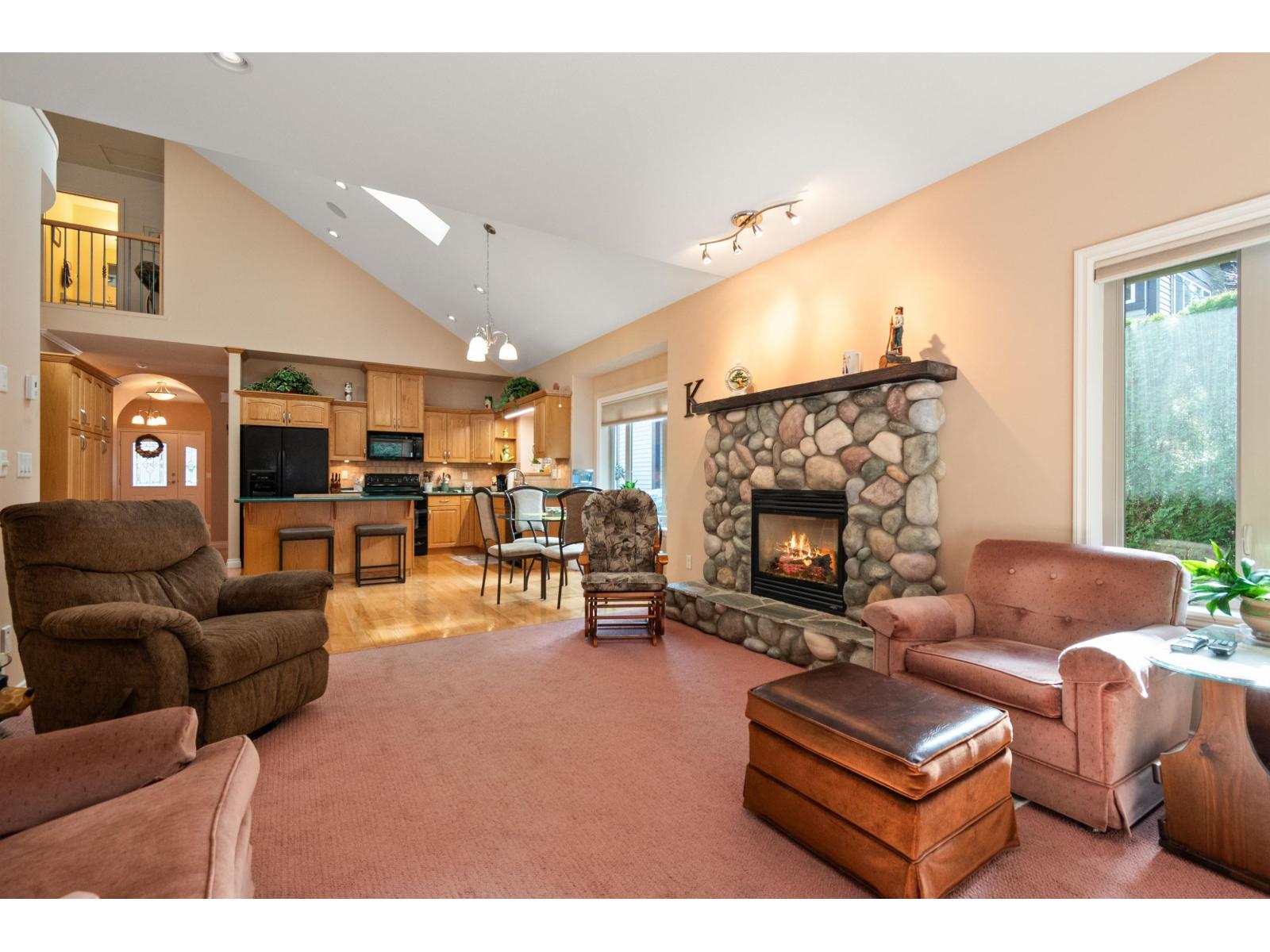 | Custom-built rancher with bonus loft and impressive 2-storey finished detached shop, backing greenspace on a flat lot in desirable East Chilliwack. Hardwood floors, 10' ceilings, vaulted ceilings in the kitchen and living room, and a stunning floor-to-ceiling stone fireplace create a bright yet dramatic main living space. Formal dining room, spacious kitchen with ample storage, and family room with n/g fireplace opening to a covered patio and private yard. Main floor features an updated bath with walk-in shower. Massive upper loft includes a wet bar and charming balcony overlooking Elk Creek and surrounding nature. Detached tandem shop with finished upper floor offers endless possibilities for a workspace, retreat, gym or office area. (id:5347) | |||