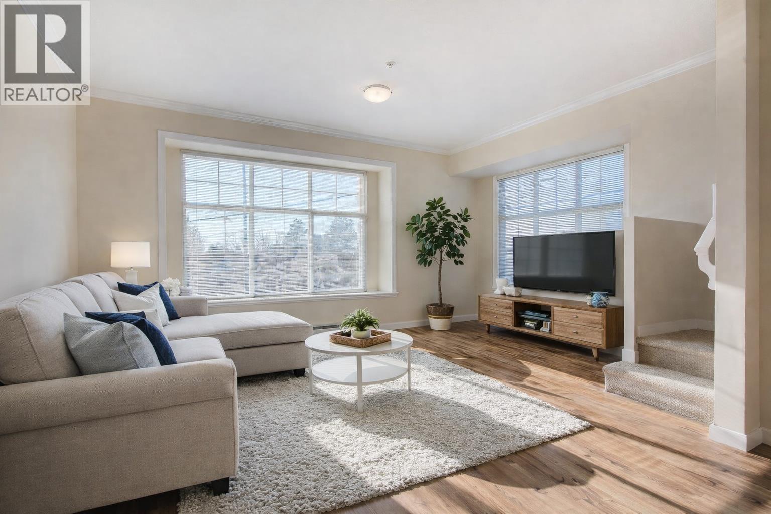 | Welcome to North Fraser Estates. This bright end-unit townhome offers 1,801 sq. ft. of well-designed living. The main level features laminate flooring, large windows, and a spacious living/kitchen area that opens to a private balcony. The lower level includes a generous rec room that can function as a 4th bedroom, complete with its own bathroom and walkout to the patio. Located steps from the West Coast Express, shopping, parks, recreation, transit, and health facilities, this home offers exceptional walkability and everyday convenience. (id:5347) | |||