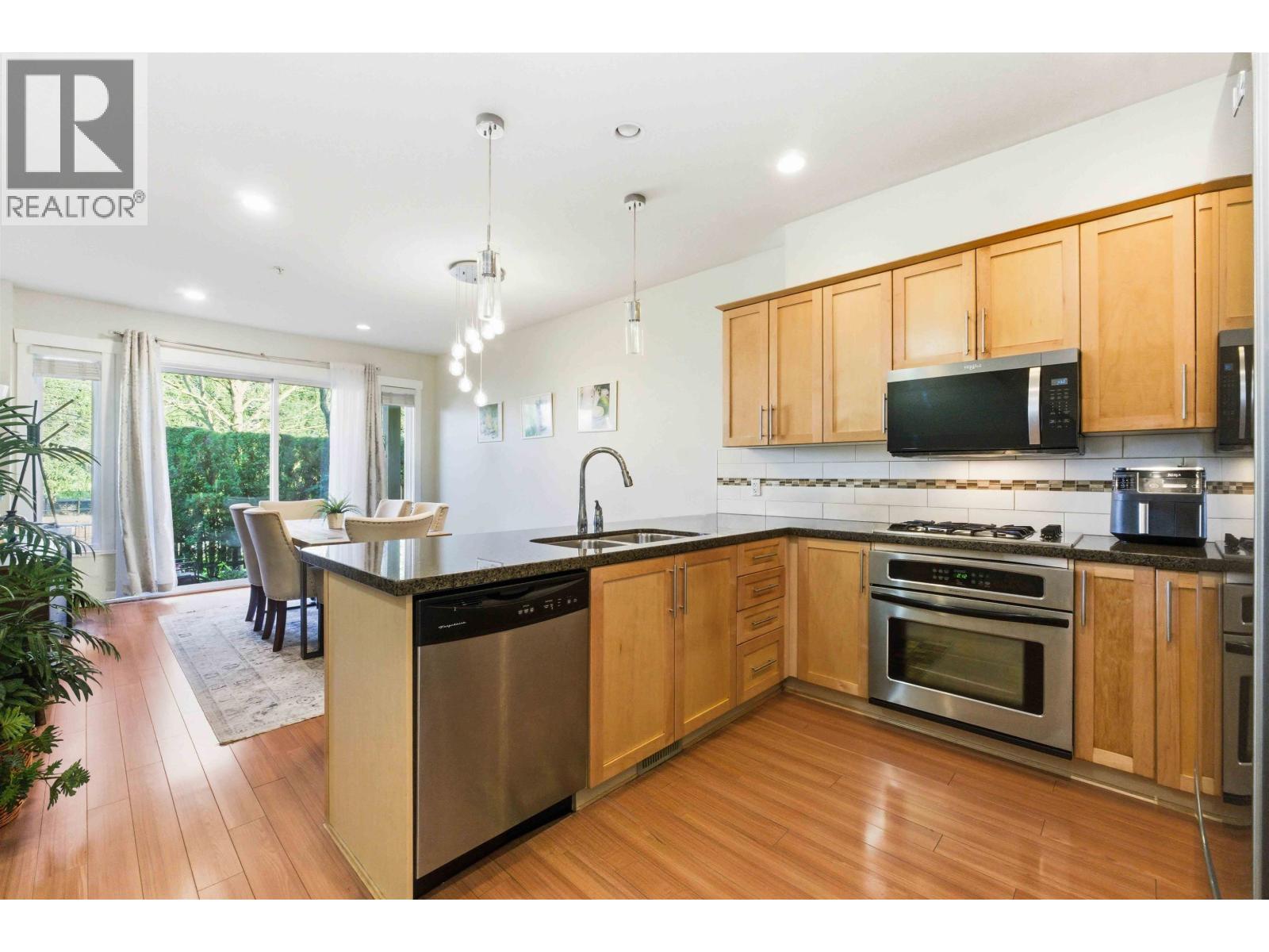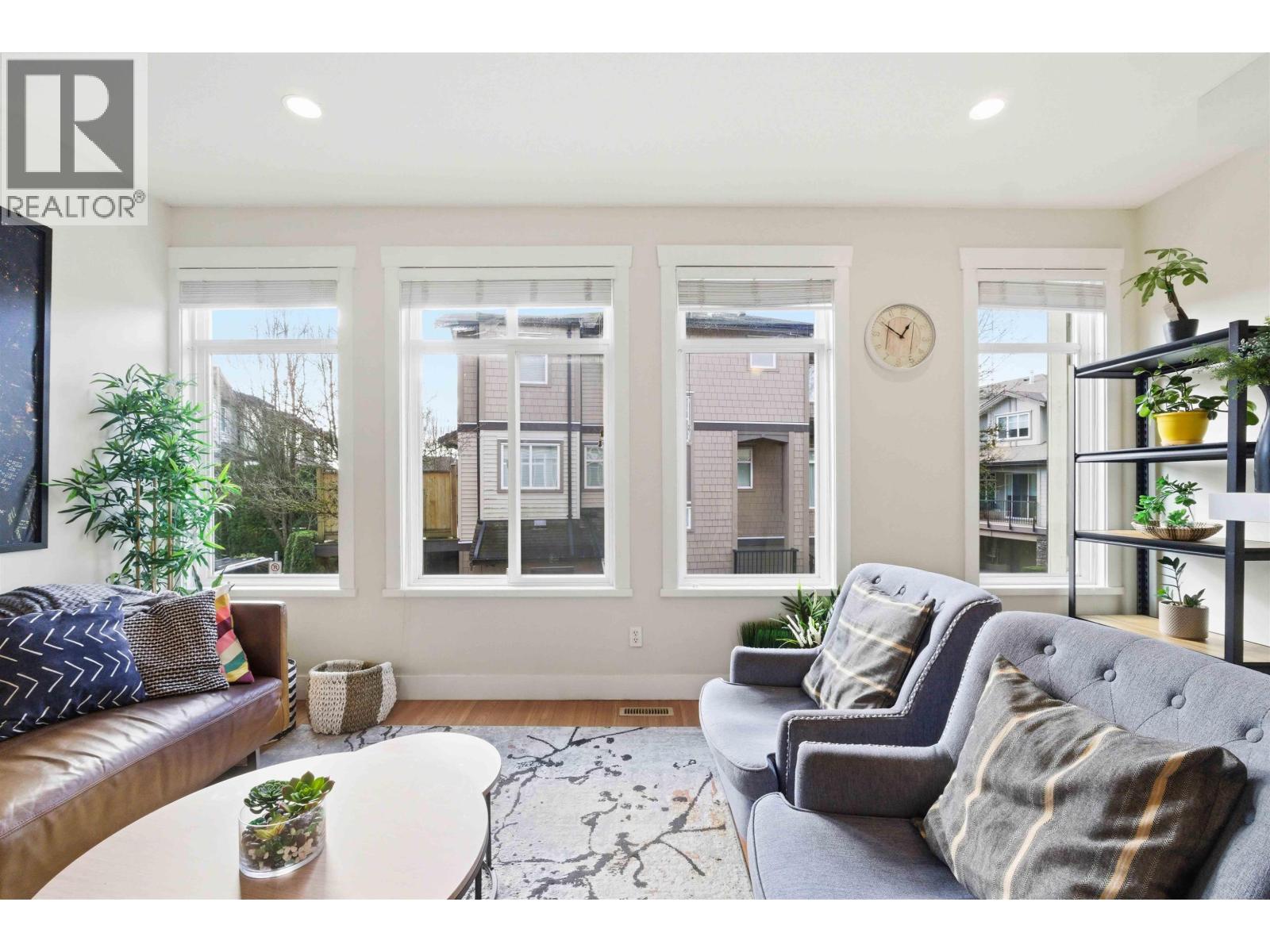 | Discover the perfect family home in the popular "Windsong" complex. This lovely 3-bedroom 3-bathroom townhouse features 9ft ceiling, an open-concept main floor with a bright kitchen offering granite counters, stainless steel appliances, and a gas stove. The adjacent family and dining area opens via sliding doors to a private outdoor patio, ideal for summer BBQs. Relax in the sun-drenched living room centered around a cozy gas ledgestone fireplace. Upstairs is a Master Bedroom with an ensuite and his and hers closets, laundry room, two additional bedrooms, and a full bathroom. Notable upgrades include window screens throughout, upgraded laminate flooring in the upper hallway, and a convenient double-car tandem garage. Within walking distance of top schools, shopping, and West Coast Express. (id:5347) | |||
