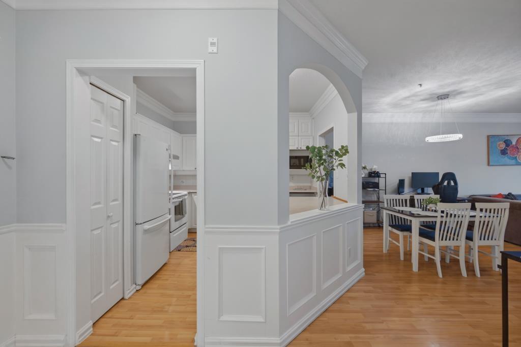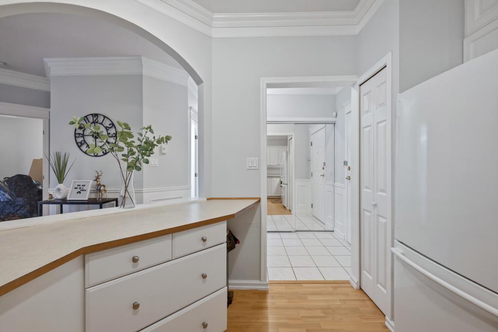 | Welcome to this bright and beautifully maintained top-floor penthouse at Regency Park. This spacious 2bdrm, 2bath condo features crown mouldings, detailed mill- work, complemented by tasteful designer colours and durable laminate flooring that create a warm, inviting atmosphere .Enjoy relaxing on the private covered deck with a lovely view, perfect for year-round use. The unit is bright, clean, and move-in ready, offering comfortable living in a well-maintained community. Enjoy excellent resort-style amenities: indoor swimming pool, hot tub, and exercise room, + guest suites for visitors. Pets allowed with restrictions (Dogs 14" top of head).1 secure underground parking stall, with additional parking available through strata. close to schools, shopping, restaurants & everyday amenities. (id:5347) | |||