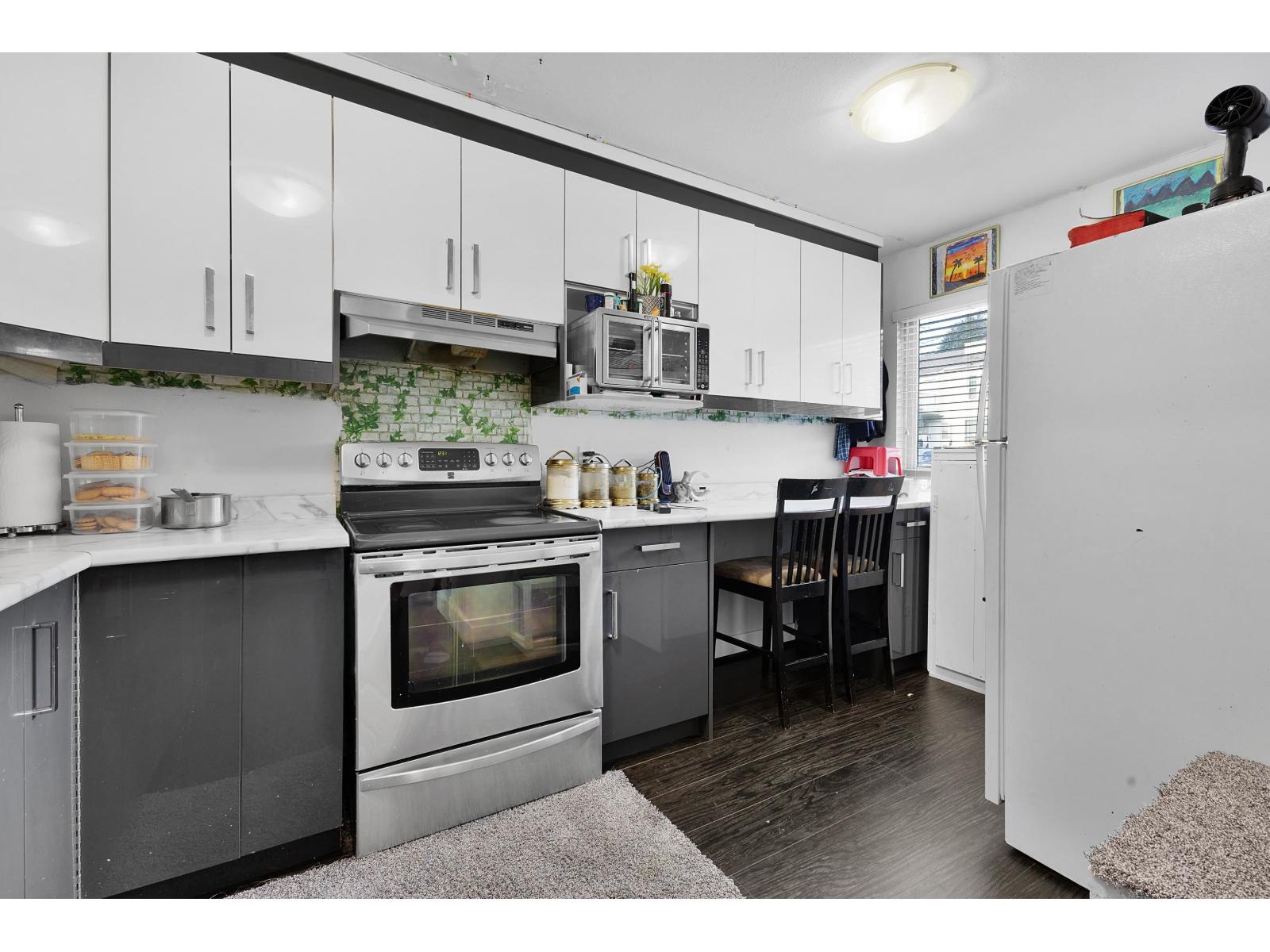 | Beautifully renovated 3-bedroom, 1.5-bath townhouse in West Abbotsford. Features new kitchen cabinets, updated bathrooms with new tile flooring and Panasonic 3-speed exhaust fans, mostly new laminate flooring, new carpet on stairs, and a new 60-gallon hot water tank. New PANASONIC DUCTLESS AC/HEAT PUMP provides year-round comfort. Added R40 attic insulation for energy efficiency. Bright living/dining area opens to a wide fenced patio. Includes two storage spaces and carport. Walk to schools, Rotary Stadium, MRC Rec Centre, shopping, and transit. Water included in the strata fee. Perfect for families or first-time buyers. (id:5347) | |||