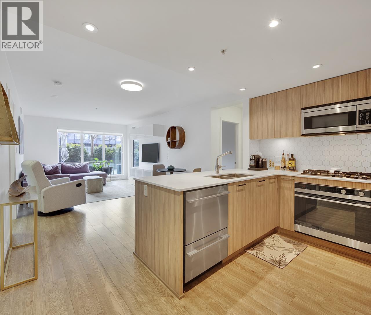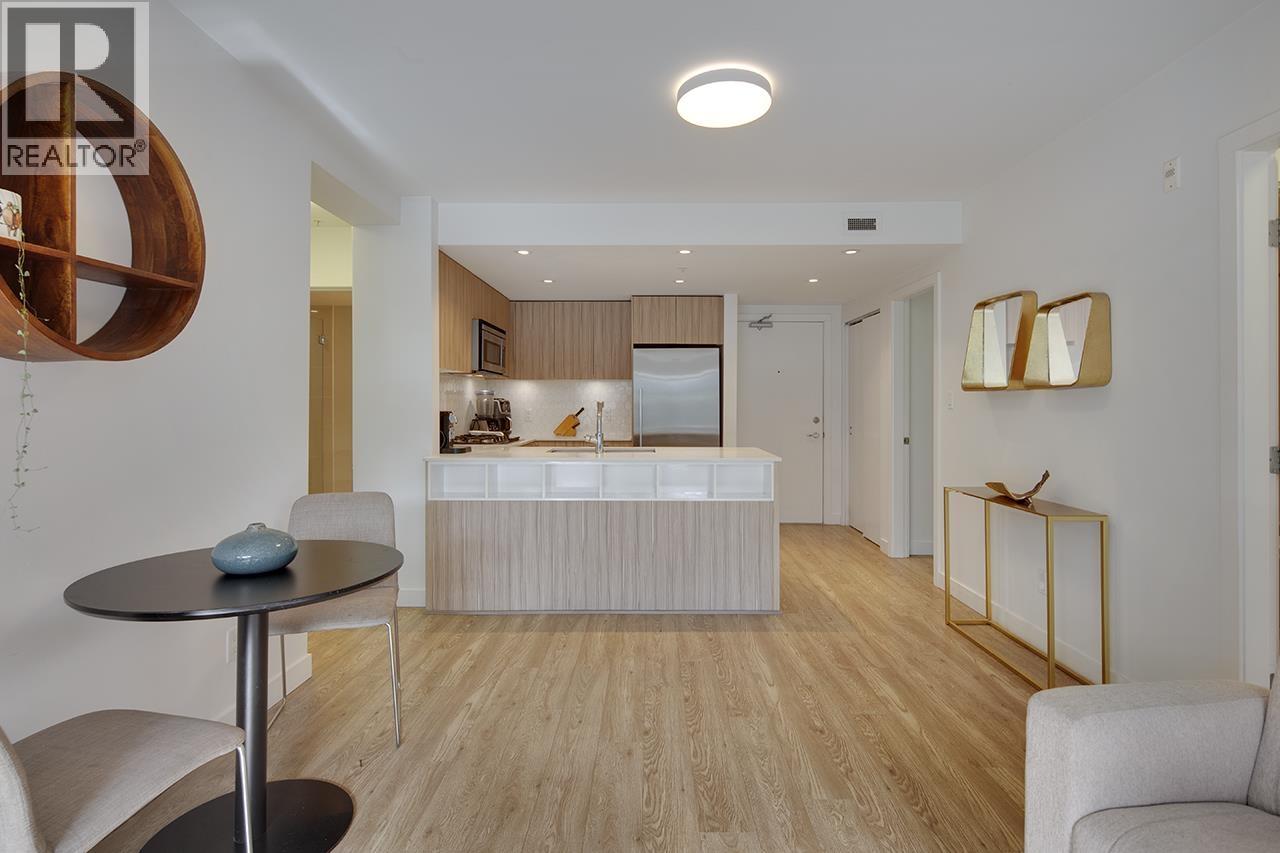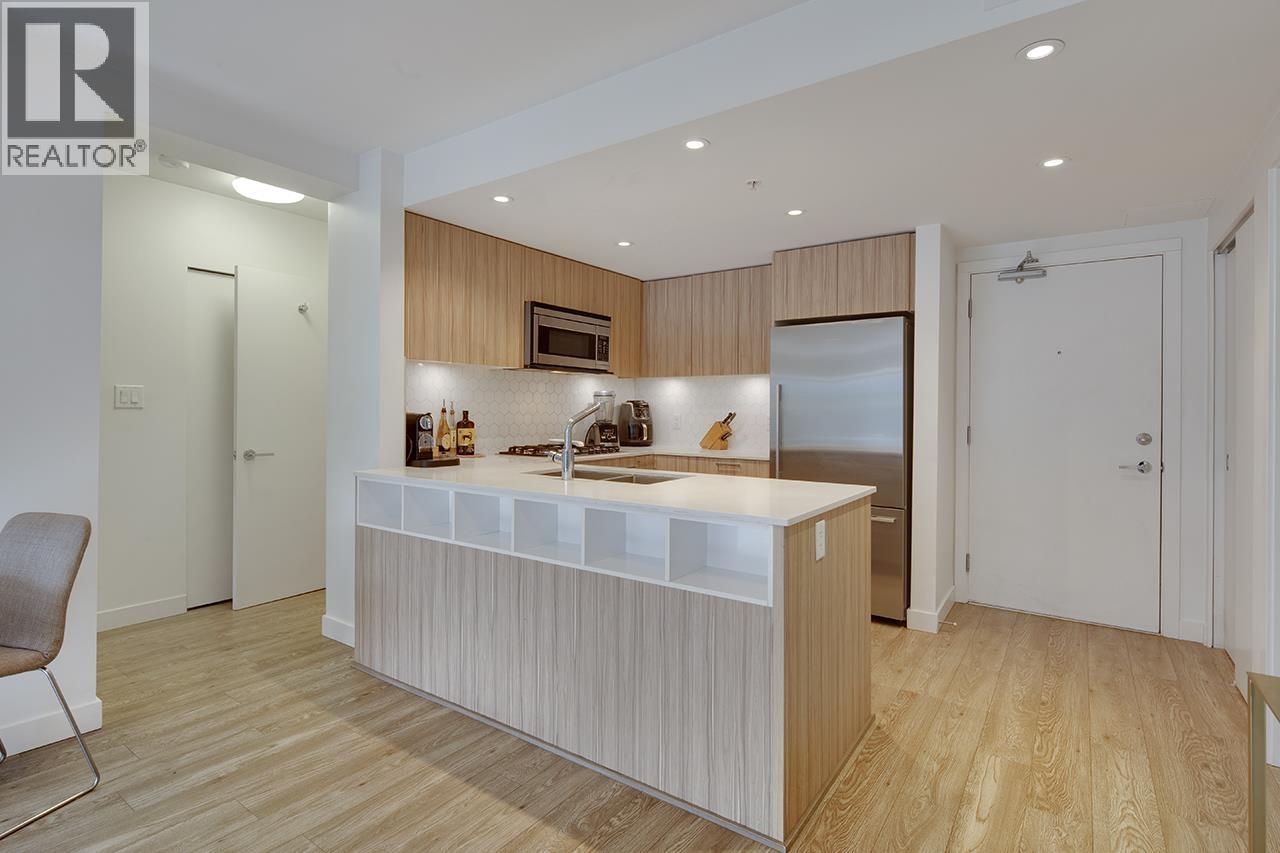 | Step into this exceptional south facing 3-bedroom, 2-bathroom with XL 421sf south-facing patio! 3rd bedroom is a den and can be used as bedroom. The open-concept design seamlessly connects the kitchen, living and dining areas that are flooded with natural light from floor-to-ceiling windows. The gourmet kitchen features quartz countertops, inviting island bar, and top-of-the-line Fisher Paykel appliances. Outside, the sprawling sun soaked deck offers plenty of space for dining and relaxing. Located in a vibrant neighbourhood, just steps away from shops, transit, cafes, and scenic trails. In-suite laundry and 1 parking space, this pet-friendly home offers an unparalleled opportunity for luxurious urban living. OPEN HOUSE Sat Feb 28 2-4pm (id:5347) | |||