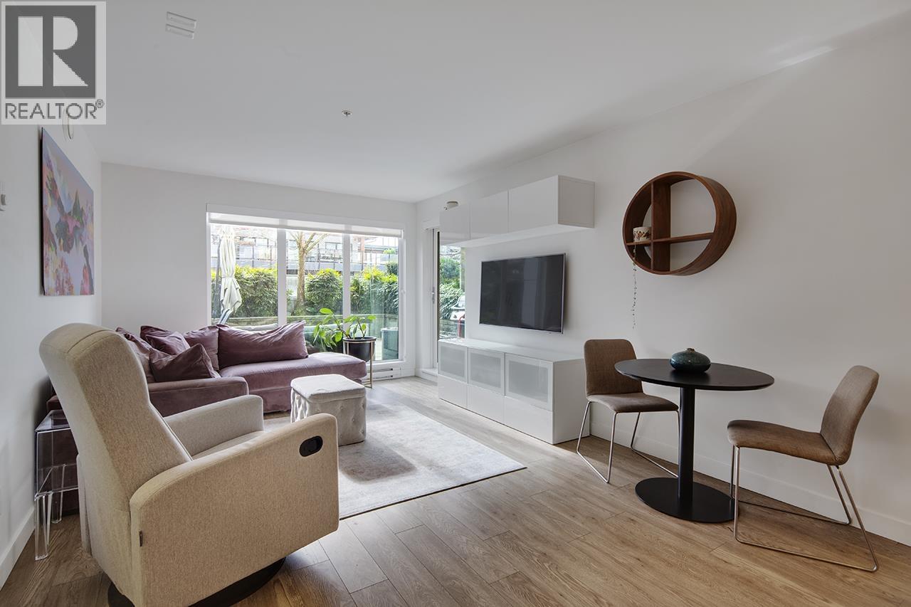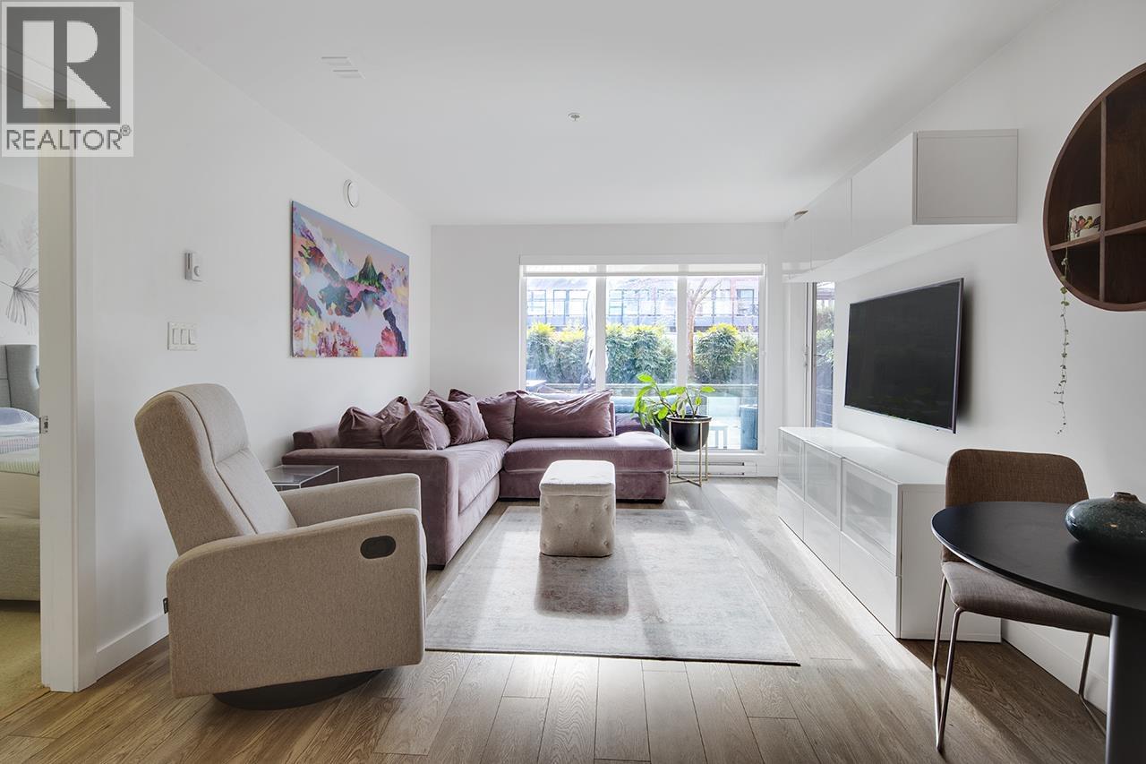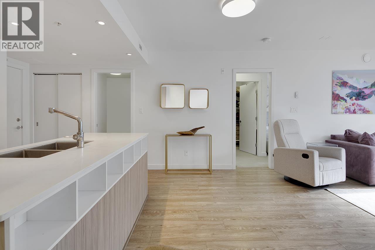| Step into this exceptional south facing 3-bedroom, 2-bathroom with XL 421sf south-facing patio! 3rd bedroom is a den and can be used as bedroom. The open-concept design seamlessly connects the kitchen, living and dining areas that are flooded with natural light from floor-to-ceiling windows. The gourmet kitchen features quartz countertops, inviting island bar, and top-of-the-line Fisher Paykel appliances. Outside, the sprawling sun soaked deck offers plenty of space for dining and relaxing. Located in a vibrant neighbourhood, just steps away from shops, transit, cafes, and scenic trails. In-suite laundry and 1 parking space, this pet-friendly home offers an unparalleled opportunity for luxurious urban living. OPEN HOUSE Sat Feb 28 2-4pm (id:5347) | |||
