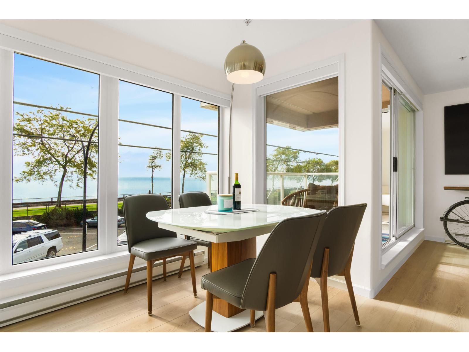 | Beautifully renovated ocean-view condo at Nautica! Enjoy unobstructed ocean views from your living room and primary bedroom in this spacious 3-bed, 2-bath corner unit (3rd bedroom with Murphy bed, no closet). Featuring over $100K in upgrades, including new flooring, paint, lighting, kitchen countertops, backsplash, appliances, built-ins, and fully updated bathrooms, this home is move-in ready. Steps to White Rock Beach, cafes, and restaurants. A true gem in the heart of White Rock! School catchment: White Rock Elementary & Semiahmoo Secondary.**OPEN HOUSE: Mar 7 7 & 8, 2-4PM** (id:5347) | |||