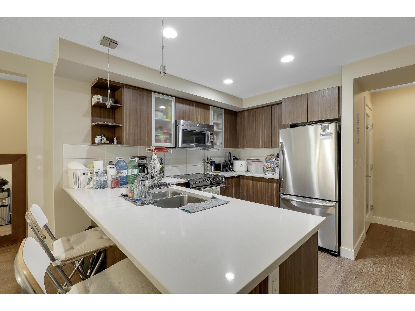 | SOUTH-FACING 2 BED 2 BATH CORNER UNIT ON THE QUIET SIDE OF THE BUILDING! This bright, functional layout offers a gourmet kitchen with stainless steel appliances, modern full-wrap cabinets, under-cabinet lighting & Caesarstone counters. Spacious living/dining area with built-in fireplace & covered deck access. Primary bedroom features walk-in closet & 4-pc ensuite. Moen fixtures, ceramic tile & premium finishes throughout. Includes secure parking, storage locker & 2 elevators. Pets & rentals allowed. Beautiful, well-managed building close to shopping, parks & transit. (id:5347) | |||