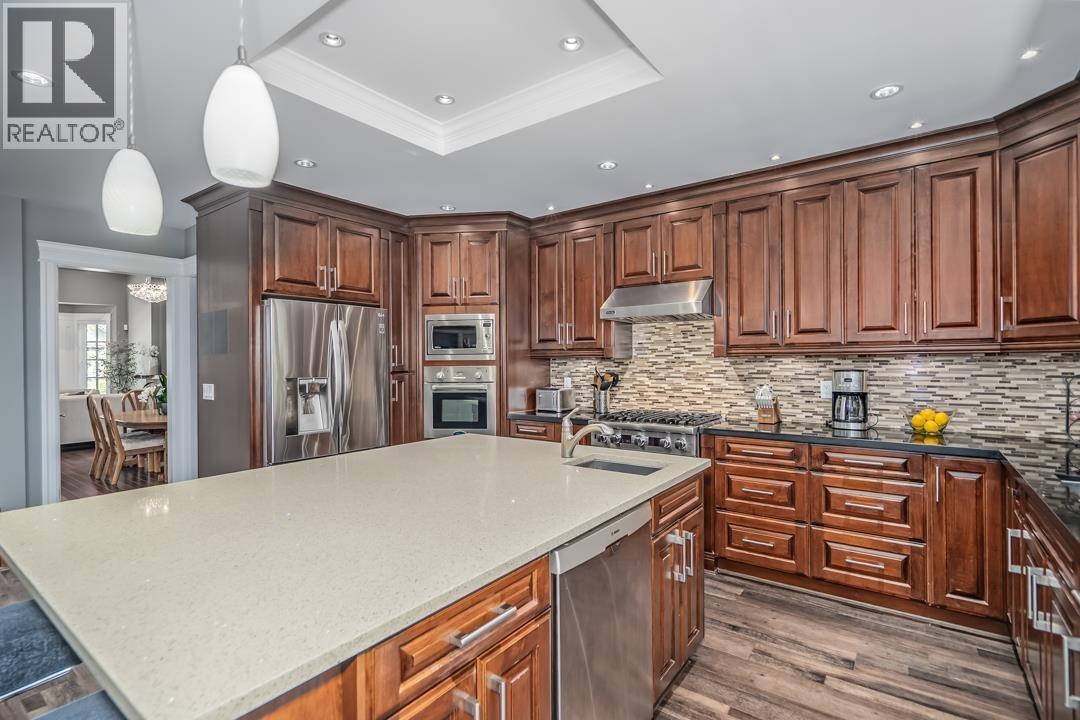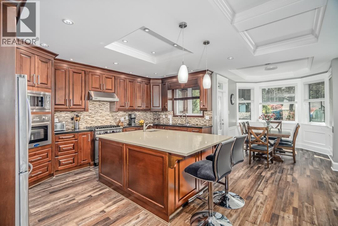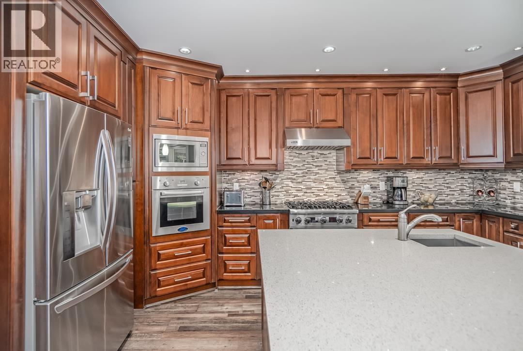 | An original-owner custom built home where craftsmanship and care remain evident throughout. In a premier neighbourhood, 10 min walk to school, steps to VCR Golf Club. 7 Bed / 8 Bath with 3 kitchens. Elegant interior feat. coffered ceilings, crown mouldings, wood flrs & German Euroline windows. Main: bed/office w/full bath, liv rm, fam rm, powder rm, gourmet kitch w/cherry cabinets, granite/quartz, gas range, W/I pantry. Upper: 3 beds all w/ens & W/I closets; primary with dbl shower & Jacuzzi. Lower: flex rm/gym + 2-pc bath, legal 2-bed suite + 1-bed in-law. Radiant heat throughout, A/C up, Squamish granite exterior, brick pavers driveway, cedar soffits. (id:5347) | |||