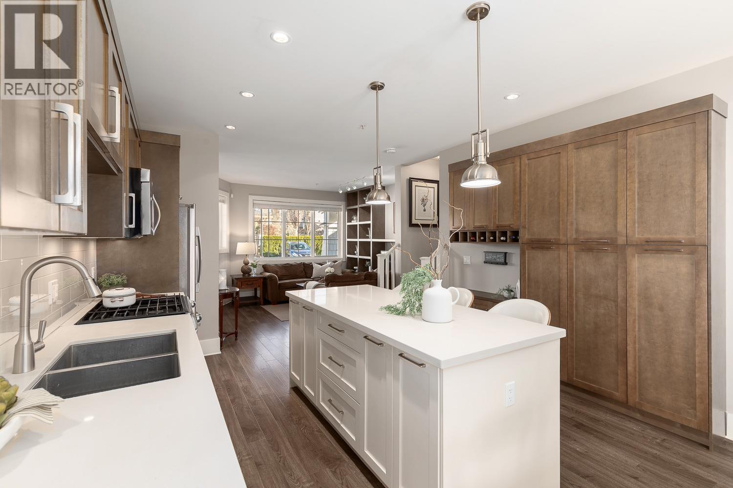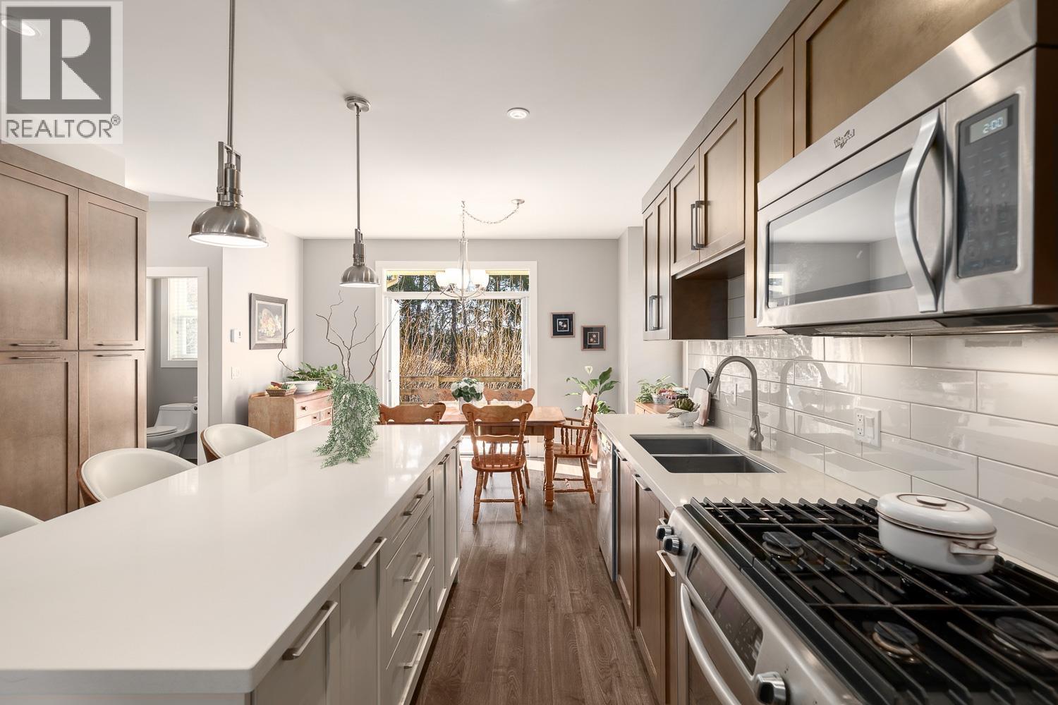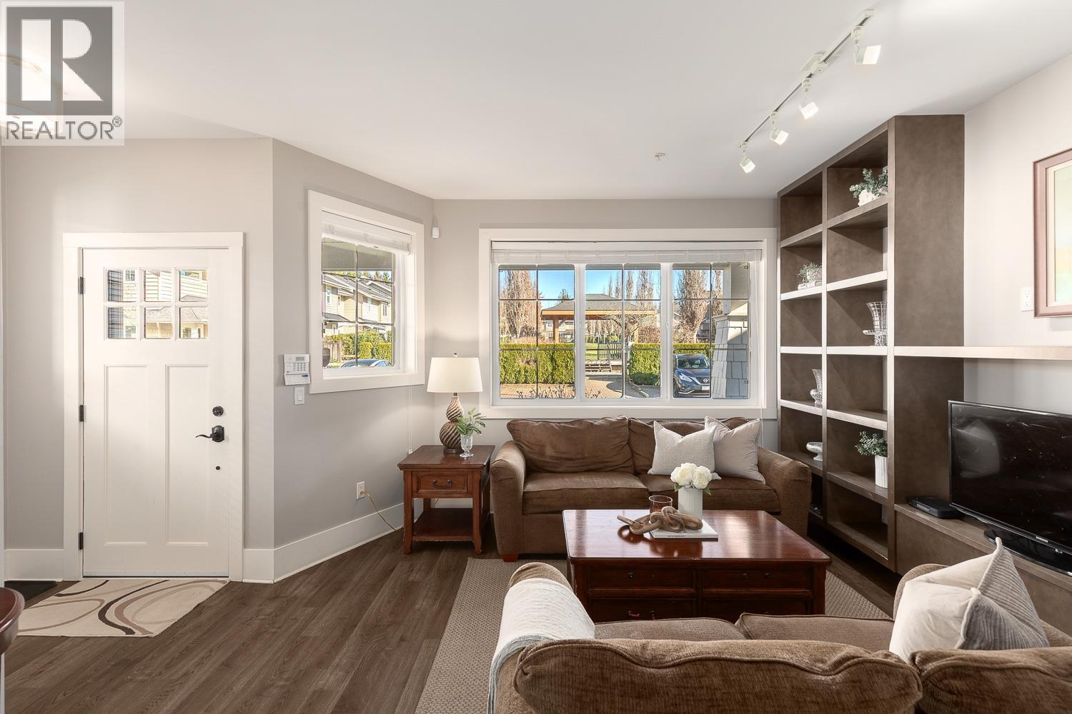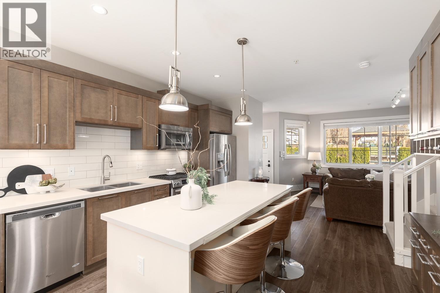 | 1/2 Duplex in the sought-after Village Green community! This traditional entry-level plan offers warm, inviting great room living on the main floor, with 1,437 square ft over two levels & the feel of a detached home. The open-concept kitchen features quartz counters, stainless steel appliances, a large island, a built-in pantry with wine rack & a powder room. A custom built-in TV shelving unit adds style & functionality. French doors open to an entertainment-sized patio & a fully fenced backyard overlooking a peaceful greenbelt. Upstairs offers three generous bedrooms, including a spacious primary suite with a walk-in shower in the ensuite, plus a separate laundry room with side-by-side appliances, counter space & cupboards. Set in a quiet, safe, family-oriented community! (id:5347) | |||