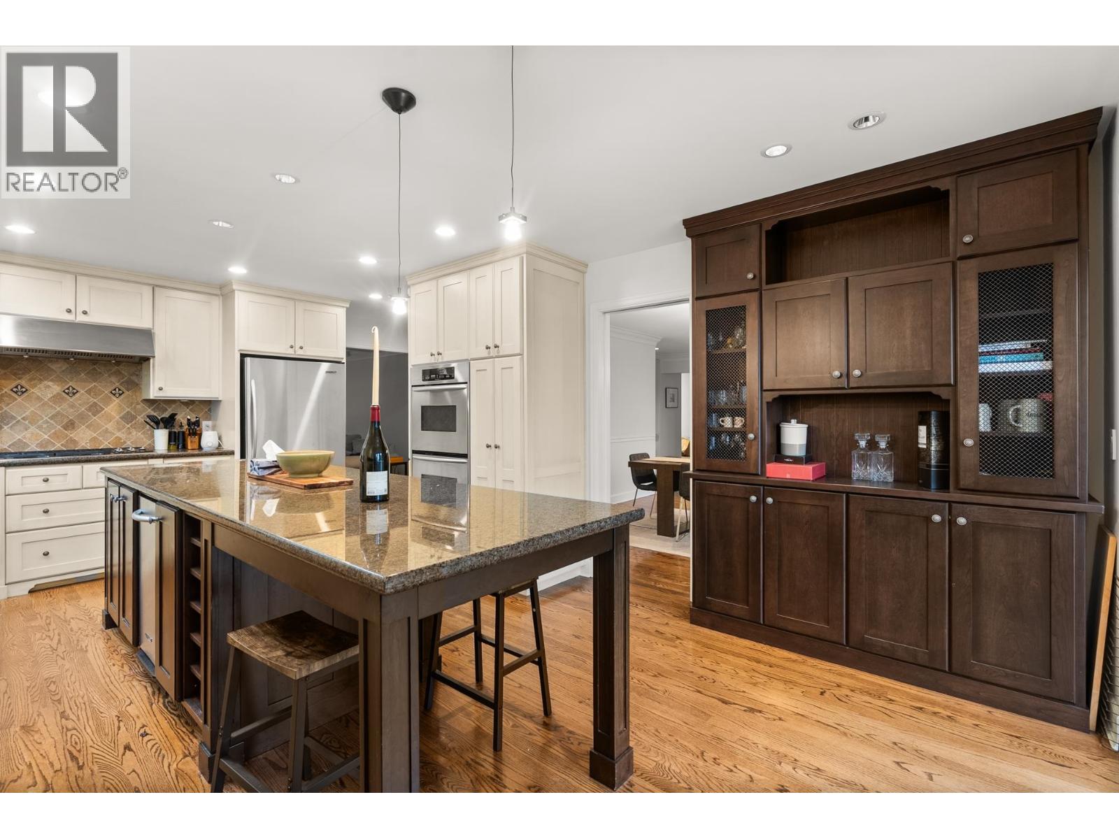 | Exceptional family home, tastefully renovated in 2006, offering approx. 3,500 sqft across three levels. The traditional layout includes 4 well-appointed bedrooms upstairs, highlighted by a luxurious primary suite with a walk-in closet and elegant ensuite. Main level features a welcoming foyer, formal living and dining rooms with large windows, rich hardwood and slate flooring, a gourmet island kitchen with breakfast bar, adjoining eating area, family room with coffered ceilings, fireplace and media centre, plus a private office, rec room, and oversized double garage. French doors lead to a beautifully landscaped 1/3 acre with serene patios and lush gardens. Walk to West Bay School, McKechnie Park, and Dundarave. (id:5347) | |||