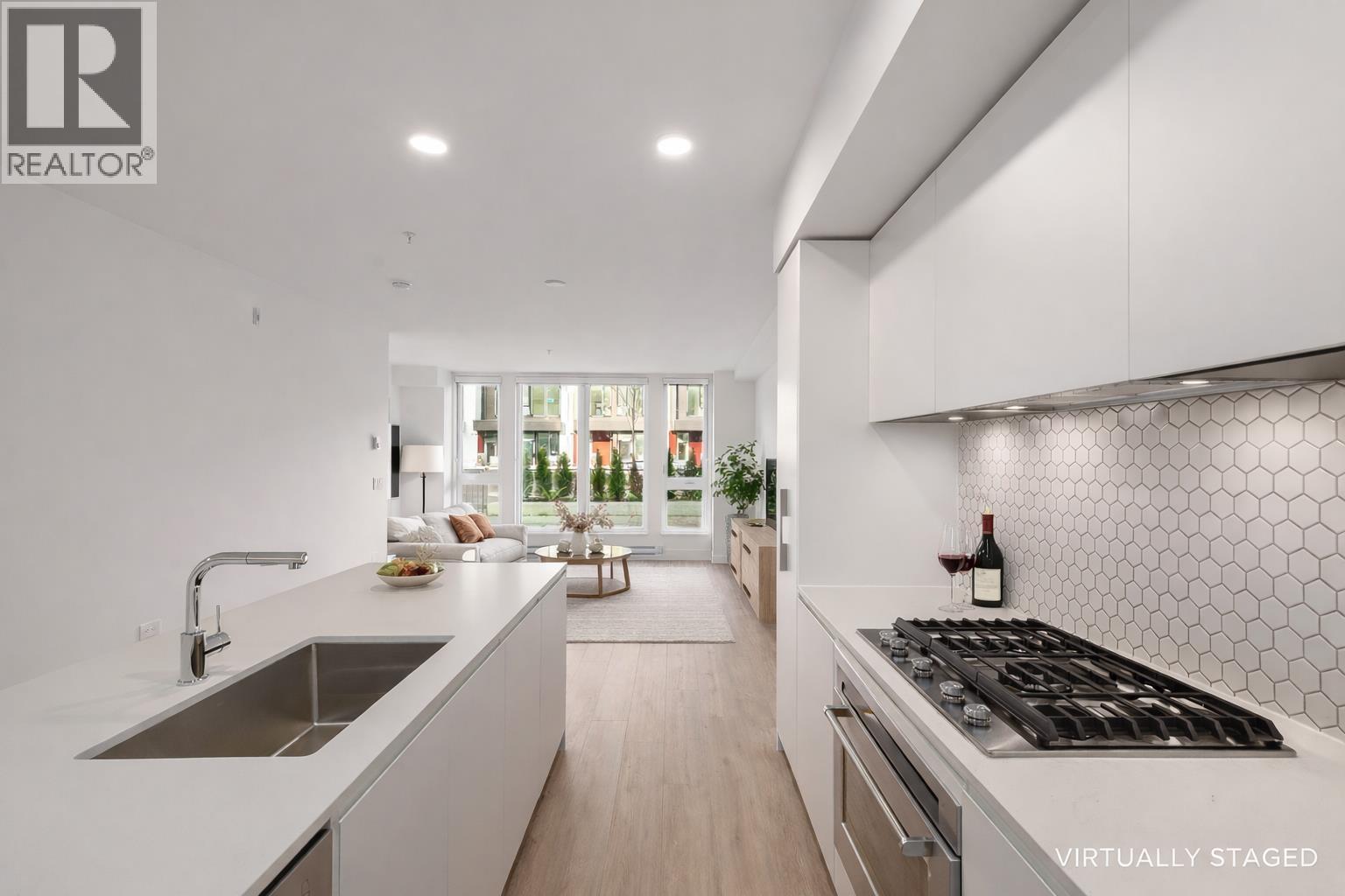 | Rare ground-level end unit in vibrant Squamish. This spacious 2bdrm/2bath plus flex/office offers over 1,600 square ft of indoor/outdoor living-perfect for an active mountain lifestyle. Beautifully appointed and ideal for entertaining, it features wide-plank flooring, a generous chef-inspired kitchen w/gas cooktop & premium appliance pkg; expansive windows and HUGE private terrace spanning the entire unit. Enjoy true end-unit privacy with no shared common walls. West Coast mountain design shines through the materials, color & finishings. Redbridge is a lifestyle community with over 20,000 square ft of resort-style amenities including red-light therapy, cold plunge, sauna, gym, workshop, dog wash, bike maintenance,yoga studio, lounges. 1 parking with EV charging + locker. (id:5347) | |||