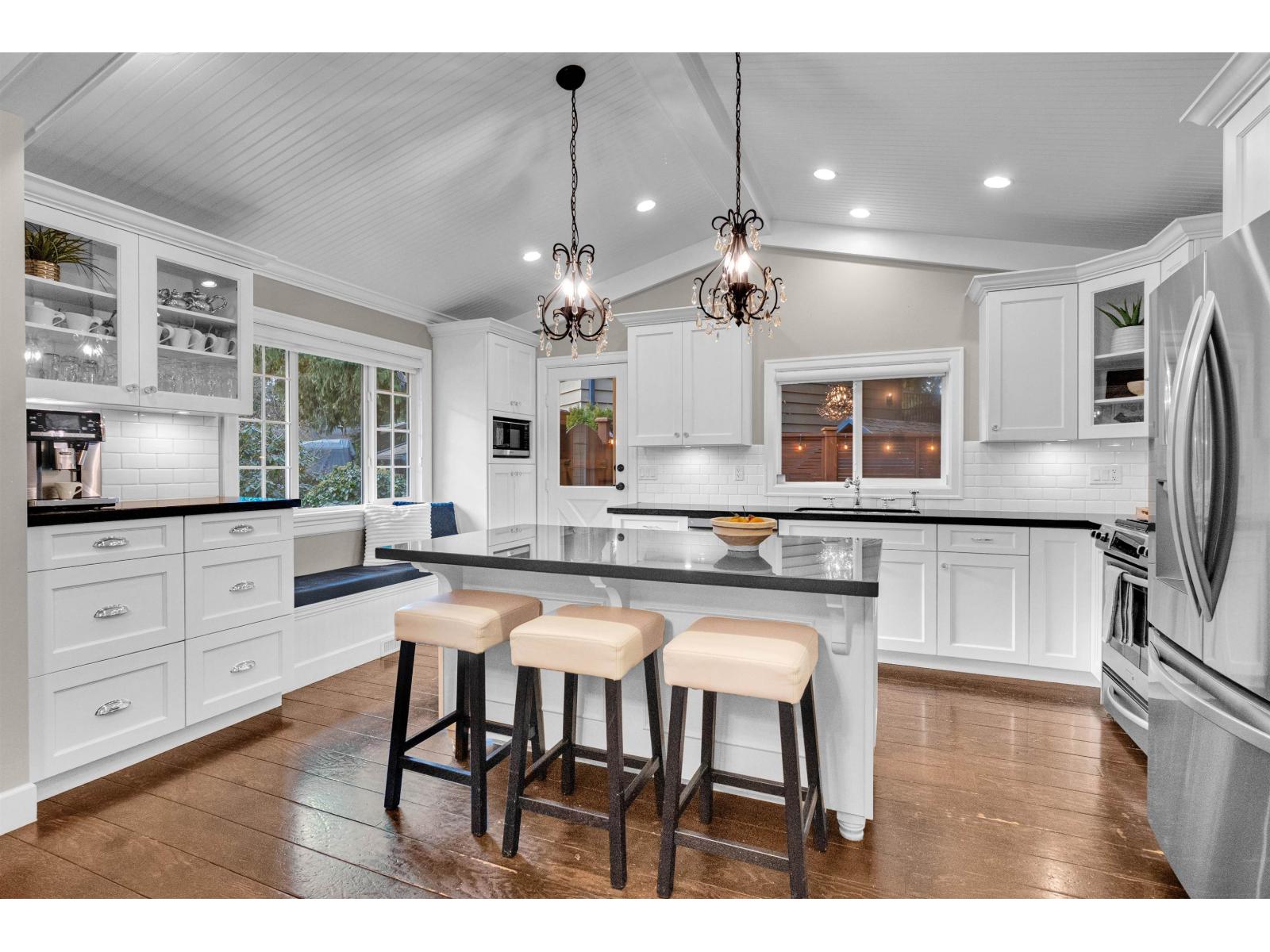 | LANGLEY'S MOST UNIQUE HOME - this hidden gem is ideal for family living. Offering 2,937 sq. ft., the unique layout features a bright white kitchen with oversized island, entertainer's dining area with bar, vaulted ceilings, and rich wood floors overlooking a sunken family room. Upstairs includes 3 spacious bedrooms, including a primary with walk-in closet and spa-inspired ensuite. Enjoy a private backyard retreat with a large sundeck, outdoor kitchen/BBQ, water feature, and refurbished playground on an 8,185 sq. ft. lot. Updates include a new roof (2025), cedar fencing, custom cabinetry, and a 1-bedroom side suite. Open house cancelled (id:5347) | |||