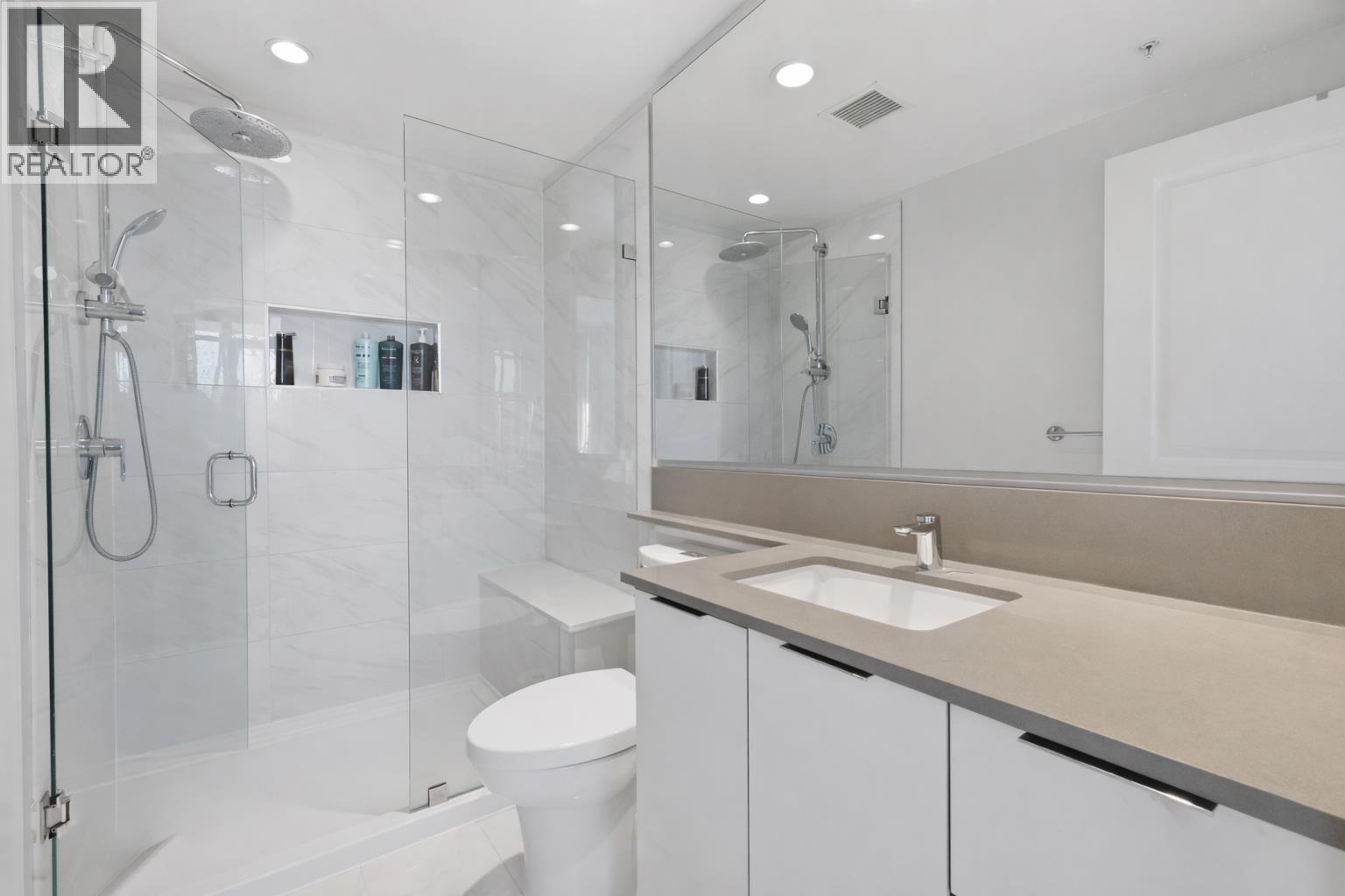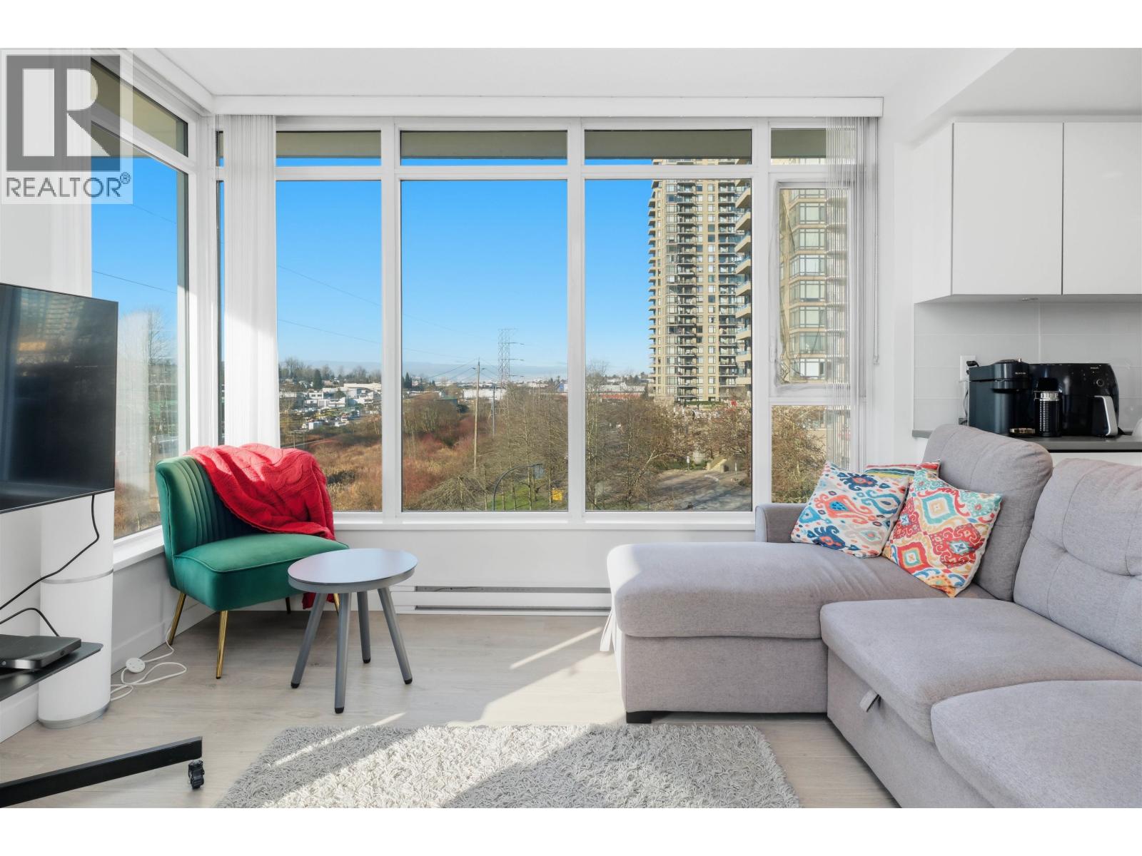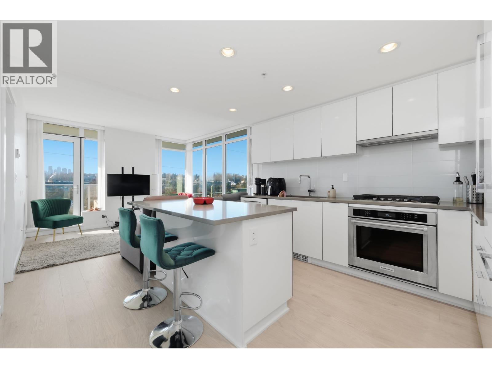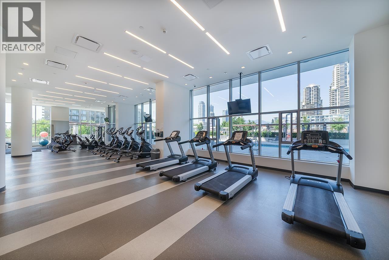 FULTON HOUSE by Polygon. This Southwest corner home offers 2 bedrooms and 2 bathrooms with a bright, open layout and a pleasant outlook. Approximately 800 sq. ft., the thoughtfully designed floor plan provides excellent privacy, with bedrooms positioned on opposite sides of the living area. The L-shaped kitchen features stainless steel appliances, a gas cooktop, and a generous island offering ample counter space. Soaring 9-foot ceilings and expansive windows allow for abundant natural light throughout. Residents enjoy access to the impressive 28,000 sq. ft. Fulton Club, complete with an outdoor pool, hot tub, sauna, and fully equipped fitness centre. Just steps to Gilmore SkyTrain and minutes to The Amazing Brentwood, shops, and restaurants. Includes 1 parking and 1 storage locker (id:5347)