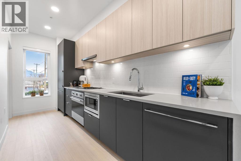 Move-In Ready! Welcome to The Grant: A curated collection of character-filled lofts, condos, and townhomes that blend seamlessly with the quiet, suburban surroundings at the corner of Nanaimo and Grant. Blending traditional industrial brick expressions with modern details rising upward, The Grant lives and breathes modern nostalgia. This 2-bed + flex home features, custom-designed kitchen cabinetry, premium stainless-steel appliances, and solid quartz countertops. Additional features include A/C, triple glazed windows, 9´ ceilings and a spacious flex area. Included is an EV ready parking stalL. OPEN HOUSE - SAT.MAR 7th 12-2PM (id:5347)