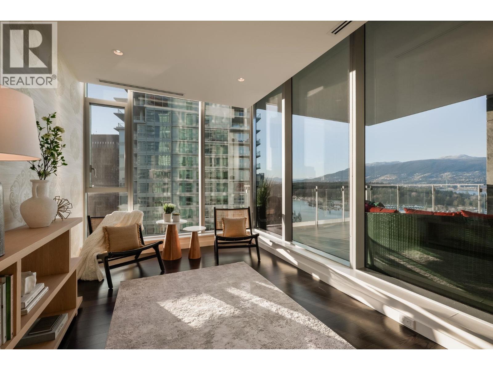 | Welcome to Three Harbour Green, where world-class design meets the pinnacle of Coal Harbour living. This expansive 2 Bed + Large Office residence is a sanctuary of light, space & elegance. Panoramic windows frame sweeping vistas of Stanley Park, the harbour & North Shore Mtns - flooding interiors with natural light & luminous beauty. A bespoke Snaidero kitchen, premium appliancess & centre island anchors the open concept plan, while a large covered balcony w/gas fireplace invites year-round indulgence. 4 secure parking, 24hr concierge & resort style amenities, pool, hot tub, fitness centre, squash & lounges, complete a rare offering that is not just a home but a statement of refinement, serenity & elevated Vancouver living. Discover the full grandeur of this residence. (id:5347) | |||