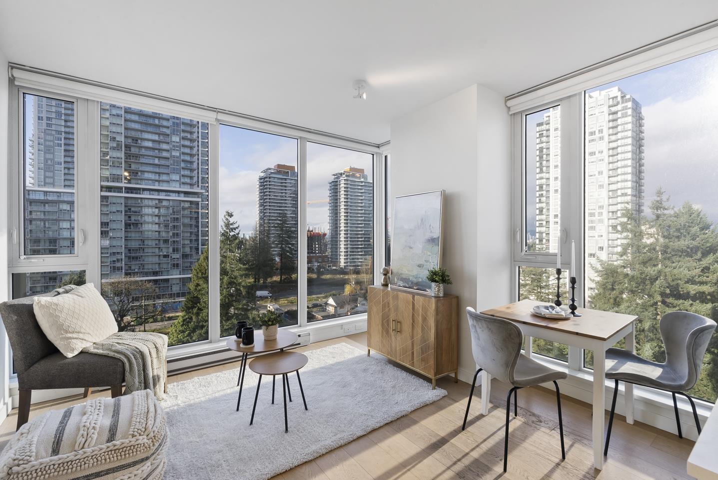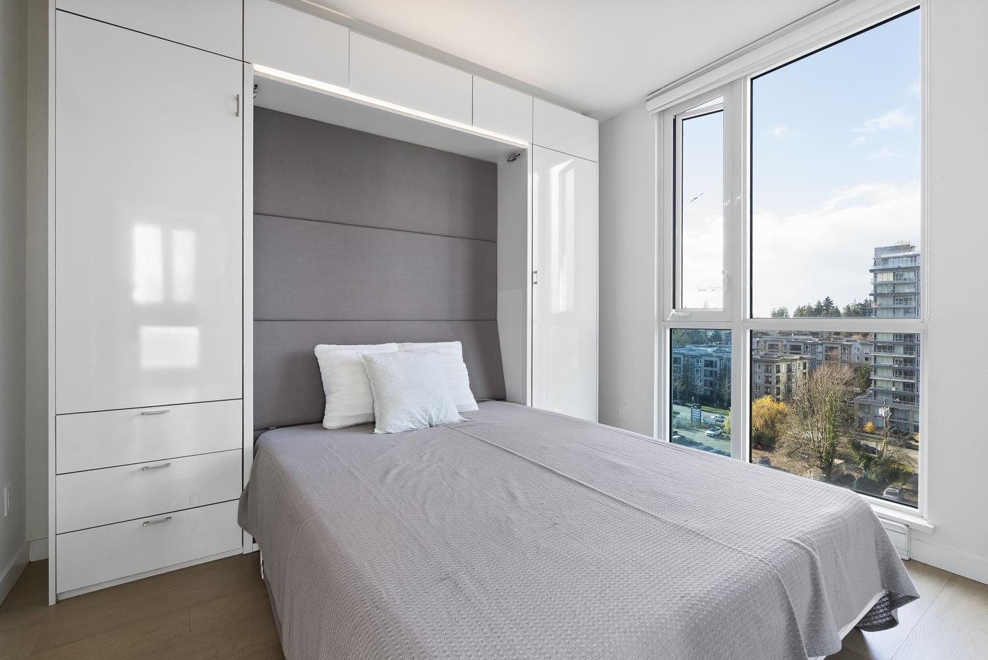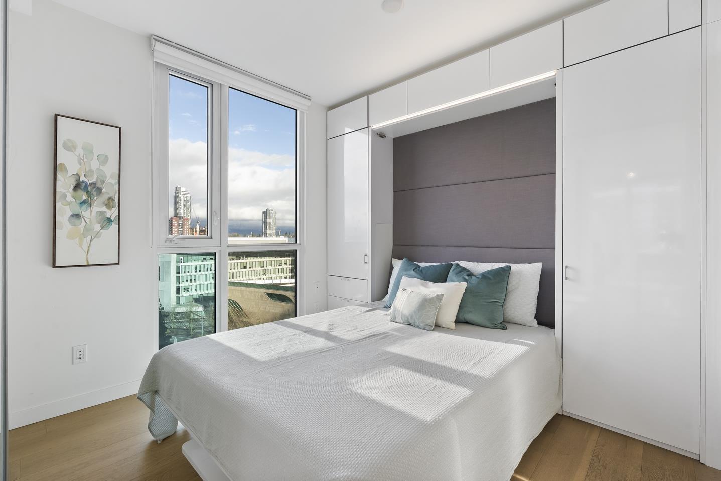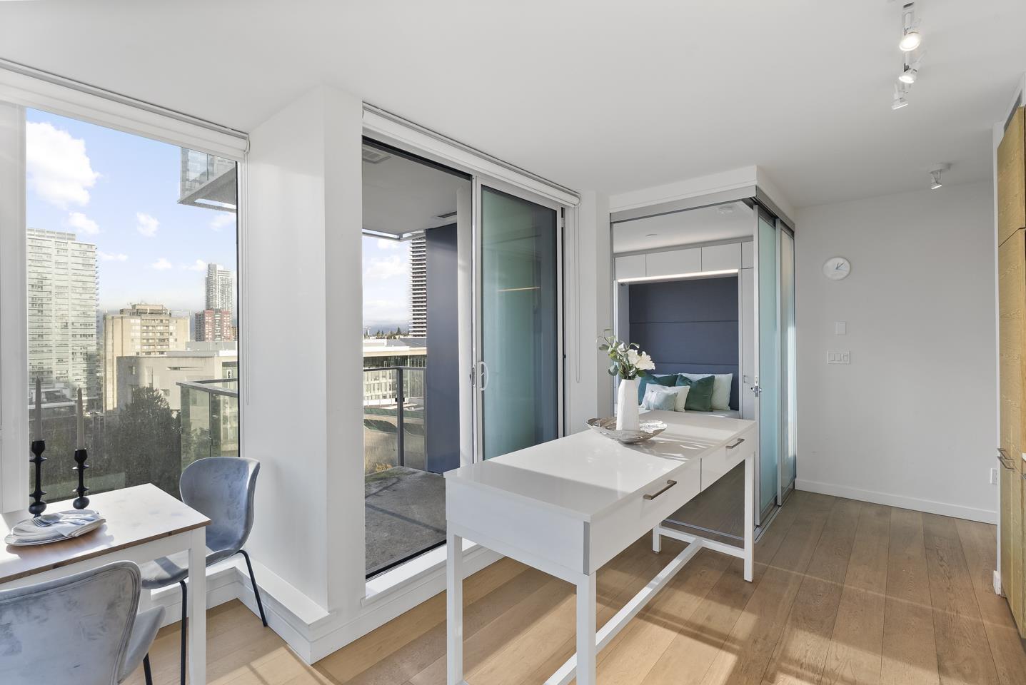 | Soak in sweeping 180° unobstructed views from this modern 2-bed + den corner home in the heart of Surrey City Centre. Smart design shines throughout-both bedrooms feature custom Murphy beds to maximize space, while the den includes its own closet, making it a true third-room option. Large windows flood the 750 sq.ft. layout with natural light, creating an airy, elevated feel. Just six years young, this home offers easy access to Holland Park, Surrey Central SkyTrain, Central City's shops and services. A vibrant, walkable lifestyle with everything at your doorstep. Open house on Mar 1 from 2-4pm (id:5347) | |||