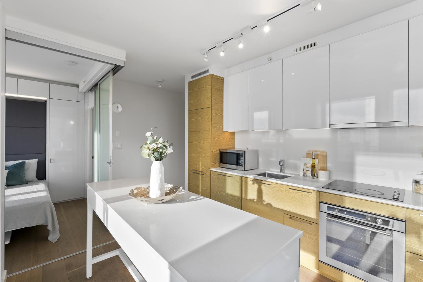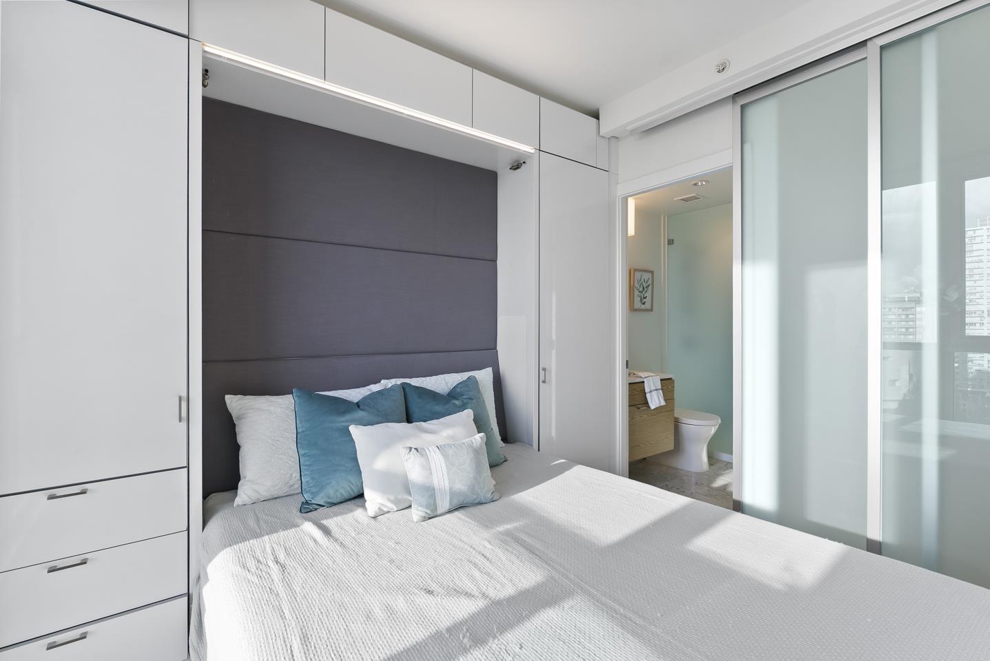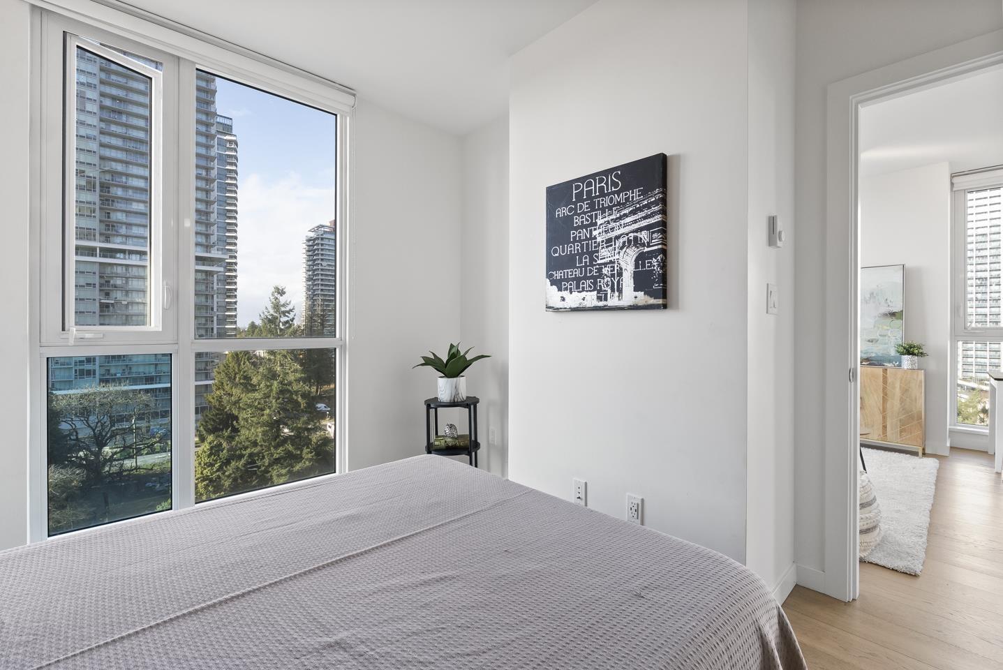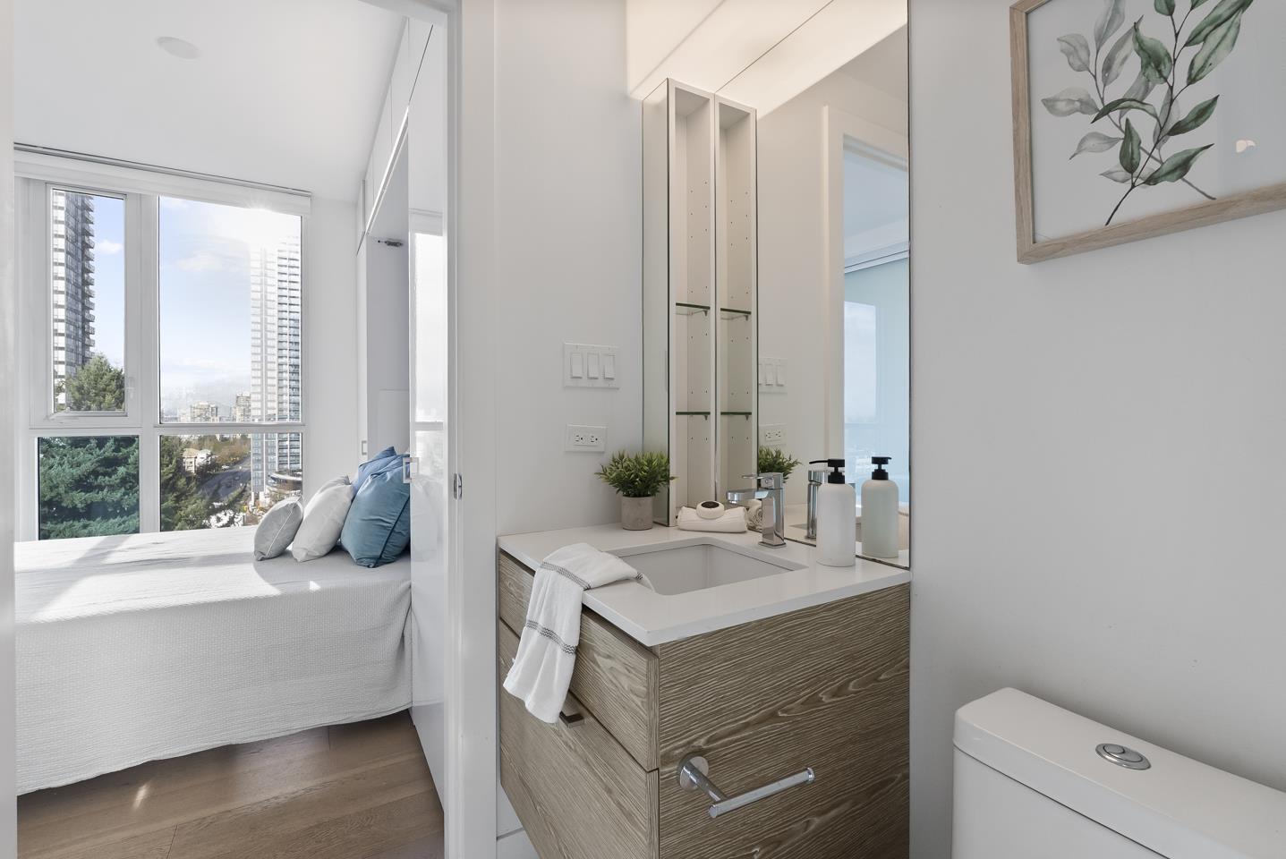 | Soak in sweeping 180° unobstructed views from this modern 2-bed + den corner home in the heart of Surrey City Centre. Smart design shines throughout-both bedrooms feature custom Murphy beds to maximize space, while the den includes its own closet, making it a true third-room option. Large windows flood the 750 sq.ft. layout with natural light, creating an airy, elevated feel. Just six years young, this home offers easy access to Holland Park, Surrey Central SkyTrain, Central City's shops and services. A vibrant, walkable lifestyle with everything at your doorstep. Open house on Mar 1 from 2-4pm (id:5347) | |||
