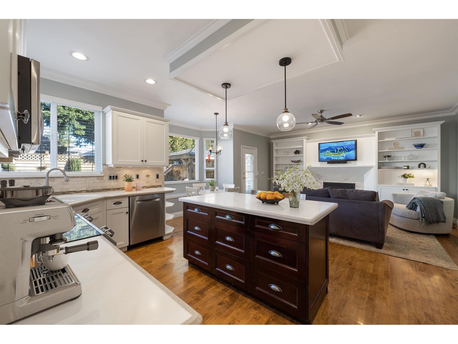 | White Rock West Side exec. home 3,634 SF. Ceiling heights on main flr 9 ft. Vaulted formal living rm /dining rm w/ nat gas fp, office w/ balcony south 254 SF. All hardwd flrs on main & above on the bdrm level. Functional open concept family room & ample sized kitchen, plenty of cabinets, island, bevelled-edged corian counters & large eating nook. Fireplace feature wall w/ storage options. Vaulted 17'10" foyer w/ staircase up. 3 generous bdrms above. Primary suite 575 SF. Below: basement 1 bdrm & full bath, rec room & wet bar + storage room. Dual access to garage 466 SF. Backyard is bright fenced & landscaped, gazebo-arbor & patio 446 SF. Schools: Semi. & Bayridge. Walk to beach, parks & rec: tennis, pickleball, playground. Transit & shopping. (id:5347) | |||
