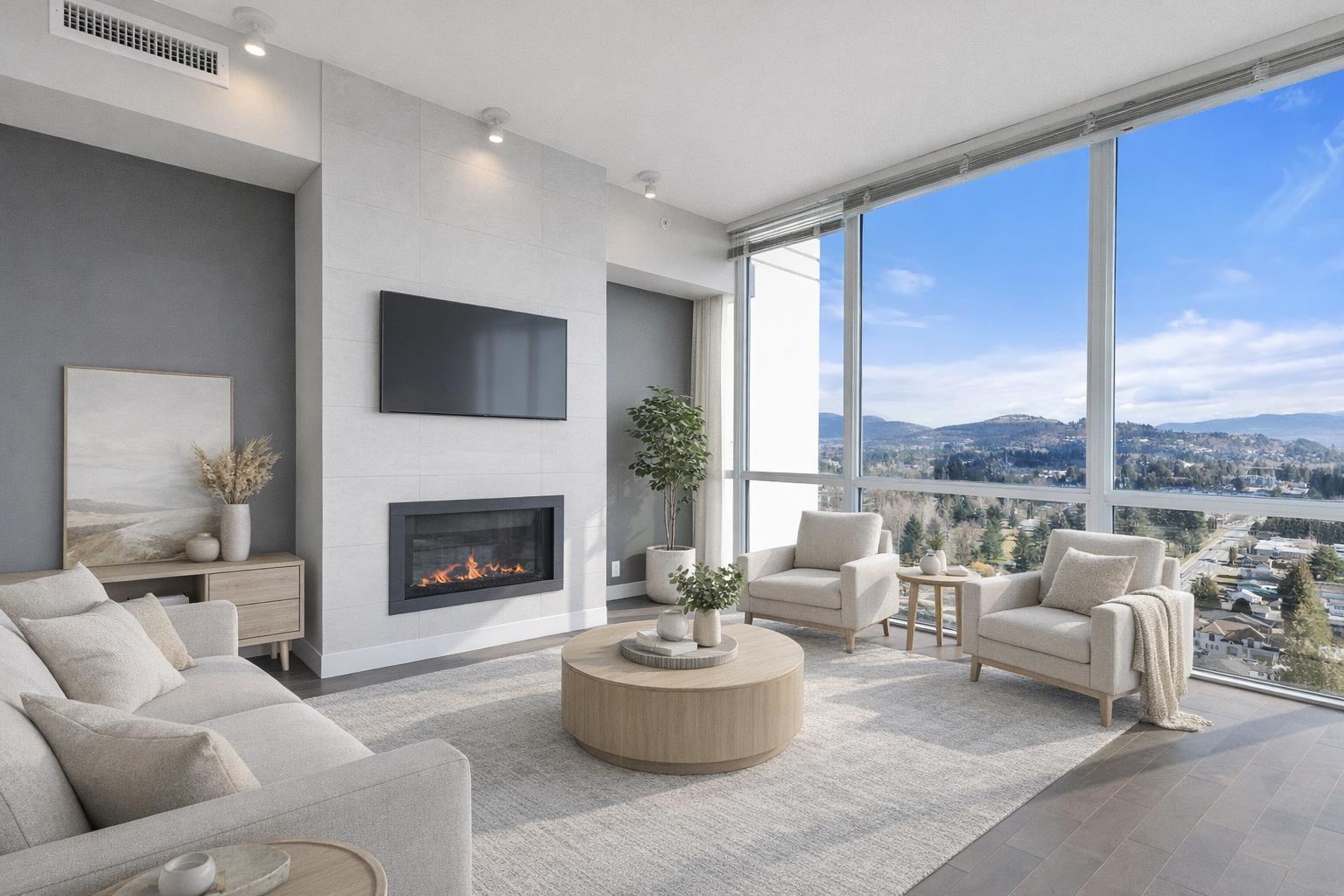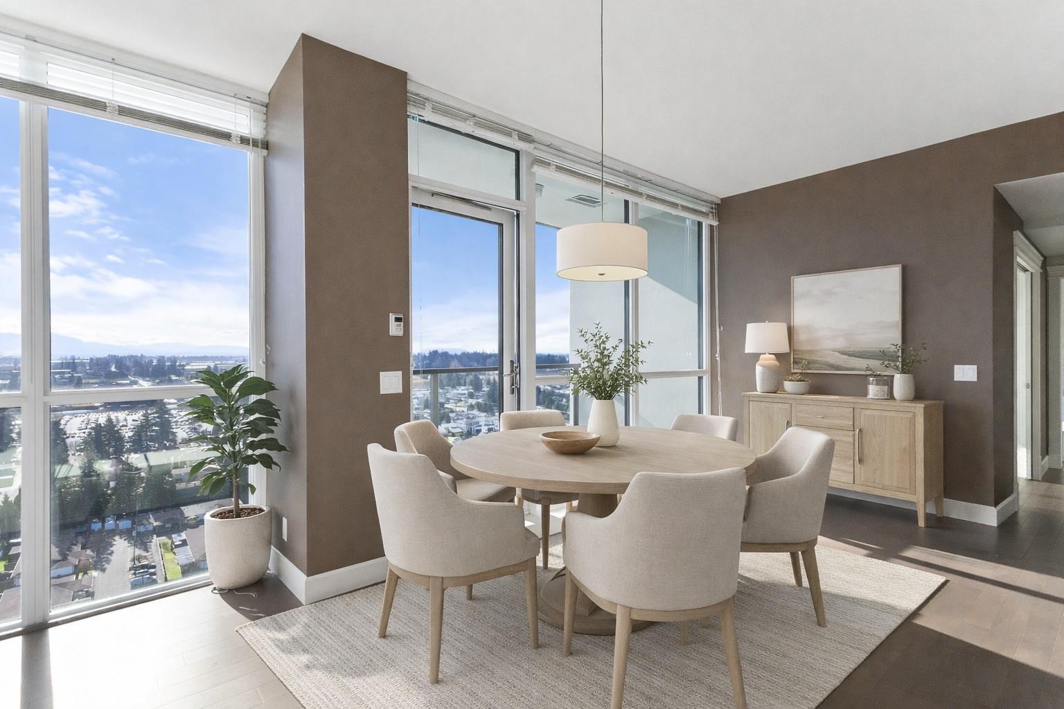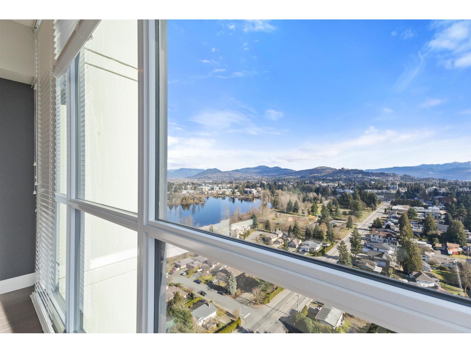 | Amazing corner condo on the 22nd floor with wall-to-wall, floor-to-ceiling windows. Fantastic views of Mt. Baker & Valley. This 2 bdrm, 2 bath condo was upgraded & should be in a magazine. Modern kitchen w/high-end S/S appliances, quartz counter tops, bright dining area& a living room with a gas fireplace. Covered sundeck to adore the gorgeous view & sunsets. 2nd bedroom/office has a wall of cabinets, murphy bed. Deluxe primary suite w/walk through closets & ensuite, 2 sinks, tiled walk-in shower. Full-size laundry rm. Lots of extras here. Geo cooling & heating. Parking for 1 plus a storage locker. Amenities galore- indoor pool, hot tub, fitness centre, club room, workshop, 2 guest suites, restaurant & doctor's office in building& pet-friendly. Walk to Mill Lake, shopping, and the hospital (id:5347) | |||