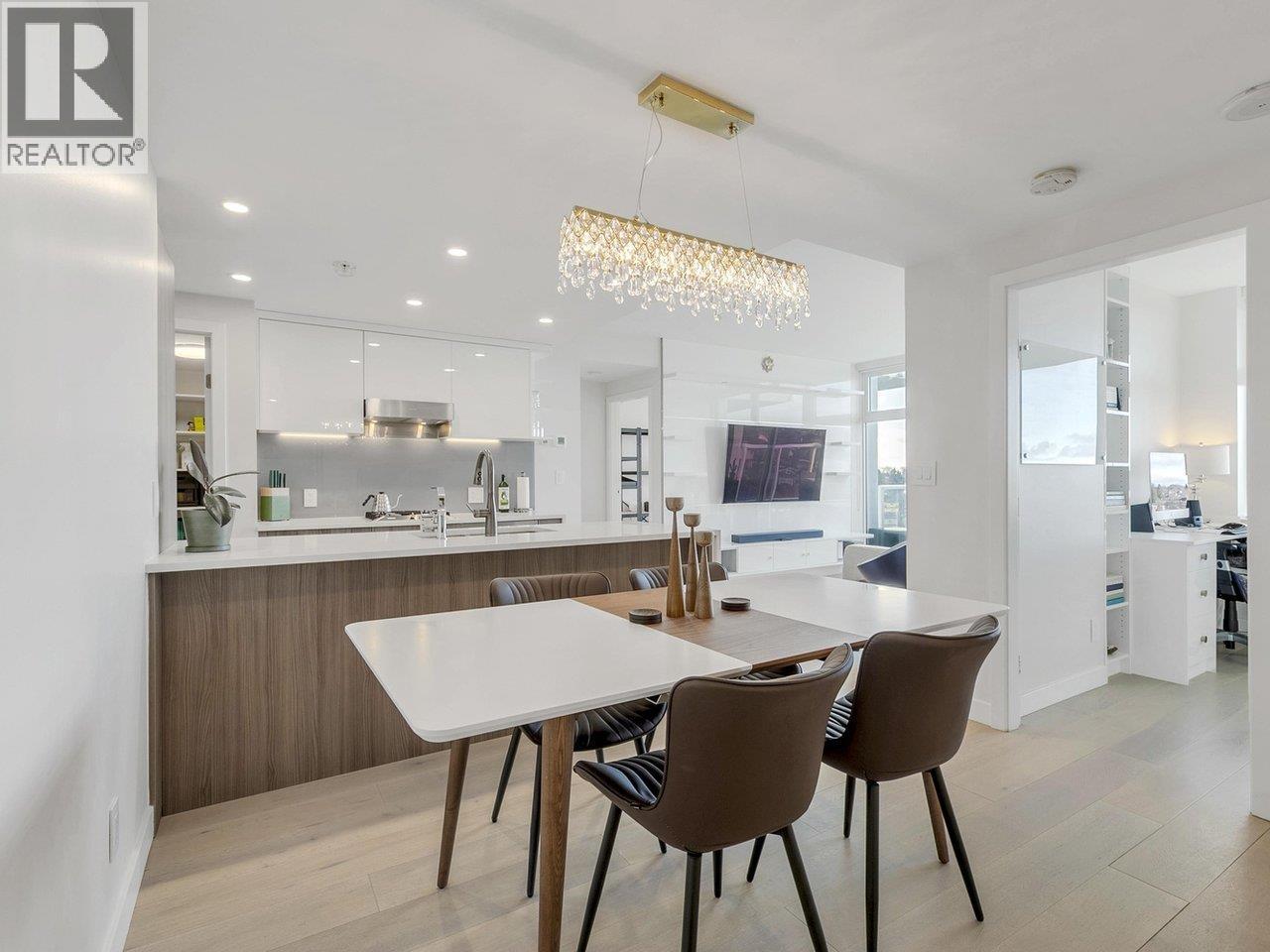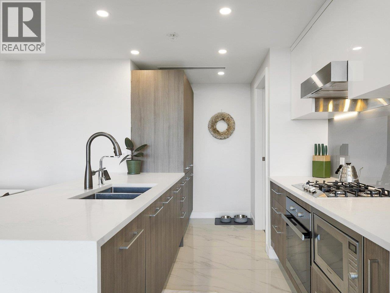 | The best 3 bedroom at Kensington Gardens offering 1,074 square ft plus 2 private balconies with unobstructed sunset views. 2 full baths (double sinks; 1 tub, 1 shower). Spacious laundry room + additional storage/bar room. Upgraded chef´s kitchen with waterfall counters, pantry, porcelain floor tiles, glass backsplash, Miele stove/oven/exhaust, and under-counter water filtration system. Upgraded bathroom fixtures. Wide plank oak engineered hardwood, custom built-ins throughout, UV-resistant roller shades, HVAC (heating & cooling). Concierge. Resort-style amenities: heated outdoor pool, hot tub, sauna, gym, study rooms, theatre, and party room with kitchen & BBQ. Pets allowed. 2 side-by-side parking near elevator + 1 storage locker. Directly above T&T and steps to SkyTrain, restaurants, shops. (id:5347) | |||