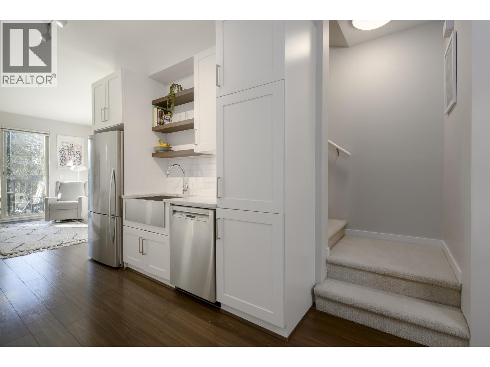 | Welcome to this bright & well-maintained 2-bed, 2-bath townhome nestled in a sought-after North Vancouver community. The main floor offers an open-concept layout with a well-appointed kitchen featuring stainless appliances, farmhouse sink & warm wood accents, flowing into a sunny living room with balcony overlooking a peaceful treed setting. Upstairs, the generous primary bedroom includes a spacious closet & 3-pc ensuite, alongside a second bedroom & 4-pc bath. In-suite stacked laundry completes the upper level. Enjoy dark hardwood floors, quality carpet upstairs & classic finishes throughout. Steps to Seymour River trails, parks, schools & transit. A perfect home for families or professionals alike! (id:5347) | |||