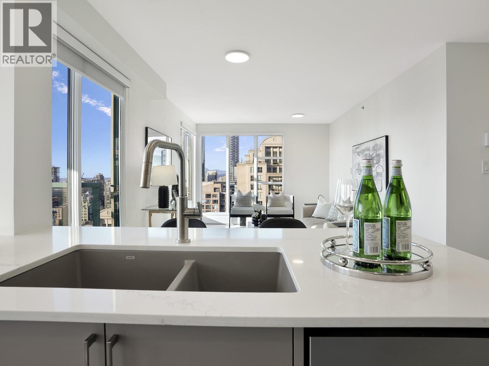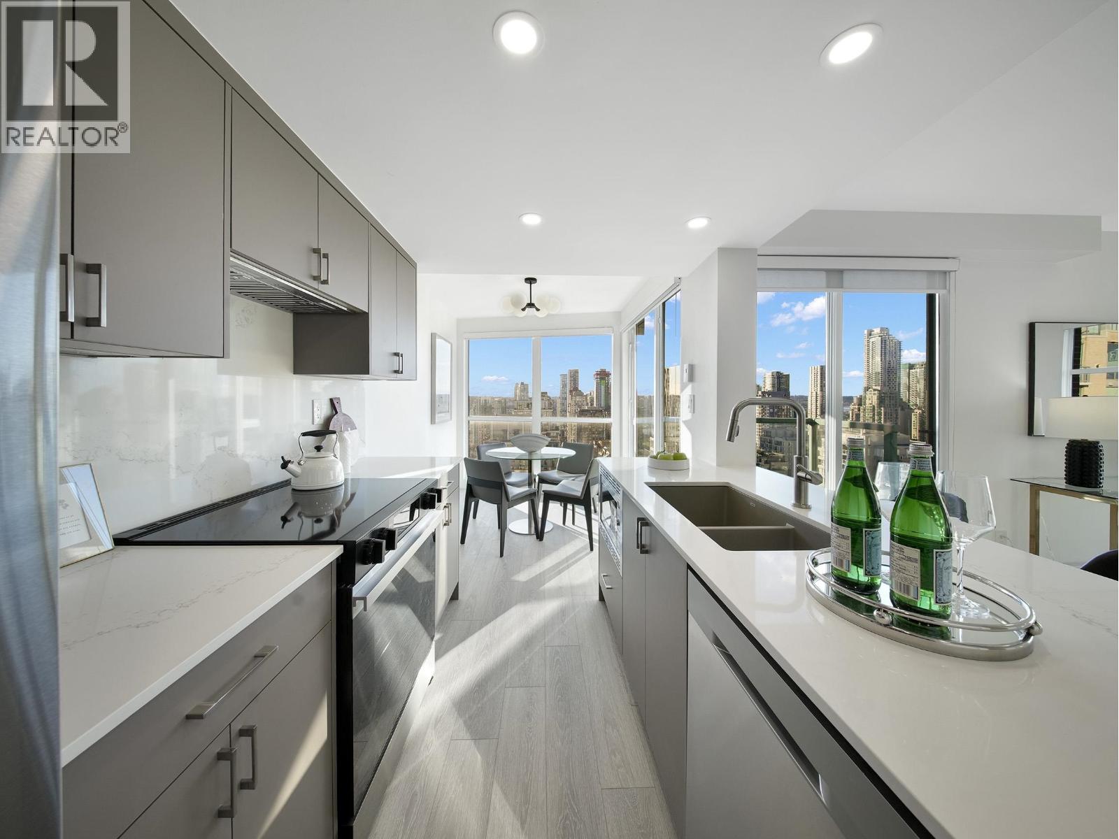 | Perched on the 33rd floor of the Pinnacle Bldg, this FULLY RENOVATED corner unit 2-bedroom home offers sweeping VIEWS of Downtown´s skyline, Yaletown, and False Creek. Bright and open with expansive windows, the layout is designed to maximize light, outlook, and everyday functionality. Thoughtfully updated throughout, this residence is truly turnkey, featuring brand new appliances, cabinets, countertops, flooring, bathroom and even A/C READY. The well-managed concrete building features concierge service and resort-style amenities including an indoor pool, hot tub, sauna, gym, and guest suite. Located in the heart of Yaletown, just steps to the Seawall, top restaurants, shops, transit, and entertainment. An exceptional opportunity for end-users or investors seeking prime downtown living. (id:5347) | |||