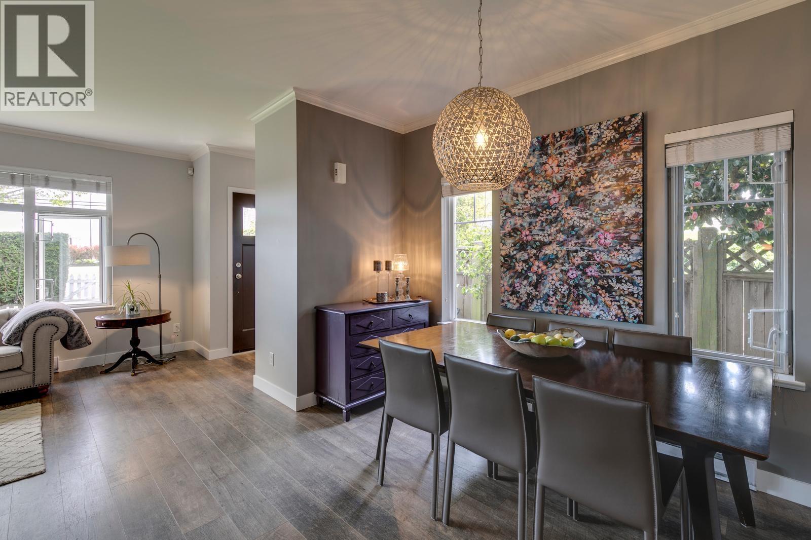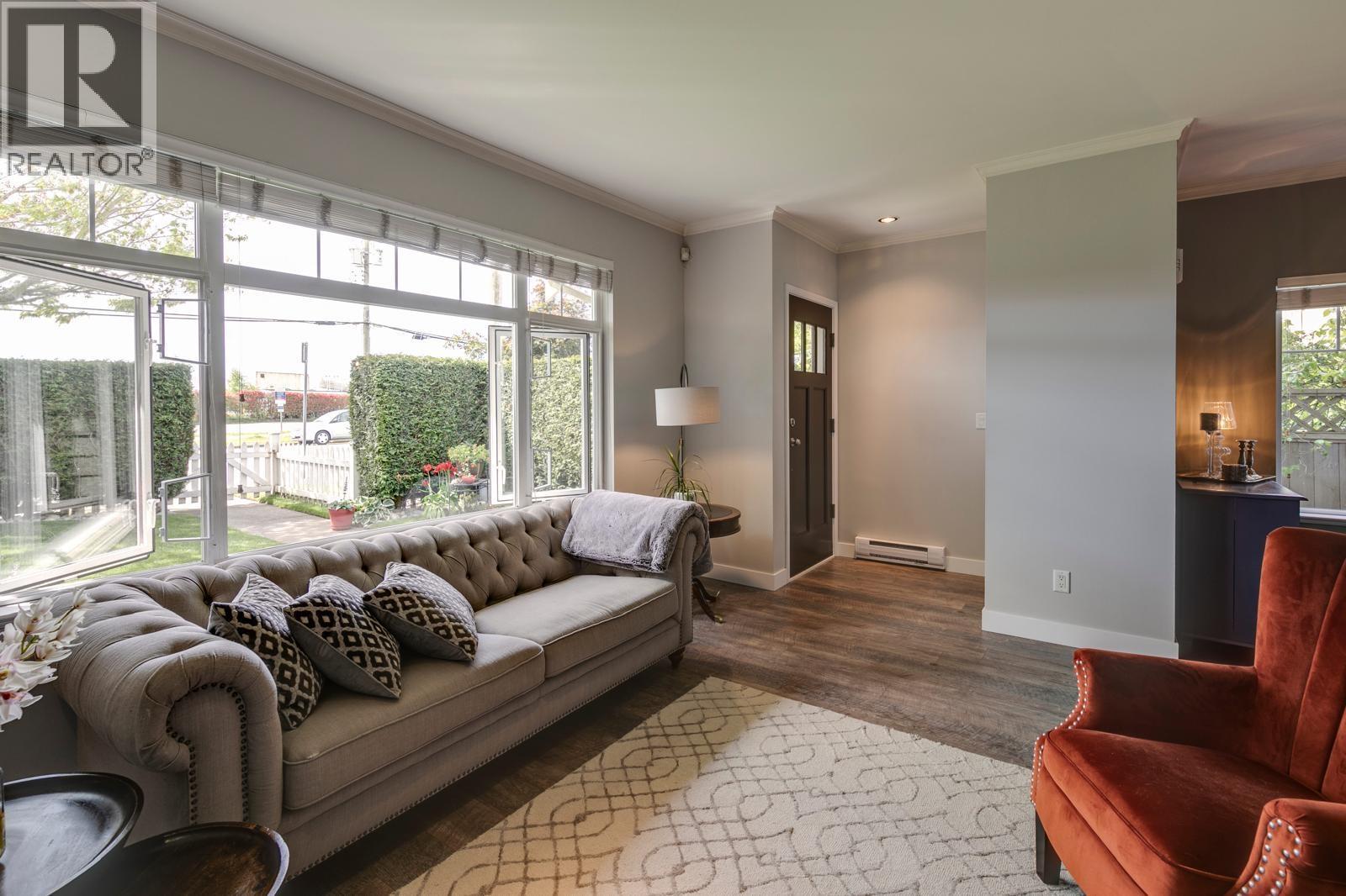 | Welcome to 5TH AND CHATHAM, an exclusive 6-unit development in a quiet location, steps to Garry Point Park and all Steveston Village's restaurants, shops and Save On. This 3 BED AND DEN AT 1715 SQ FT, boasts a large double side by side garage, END UNIT, 9 FT ceilings on both levels. The kitchen is designed with shaker cabinets, double sink, granite countertops, island and raised eating bar. BONUS is the great ROOFTOP terrace with stunning views of Fraser River, Steveston Village and North Shore mountains plus a private balcony off the primary bedroom and a large front SOUTH facing front fenced yard. Well managed strata with low monthly fees. Updates incl newer flooring, EV charger, hot water tank, washer/dryer, kitchen faucet and painting. DON'T MISS OUT! OPEN HOUSE MARCH 7 2-4P.M (id:5347) | |||