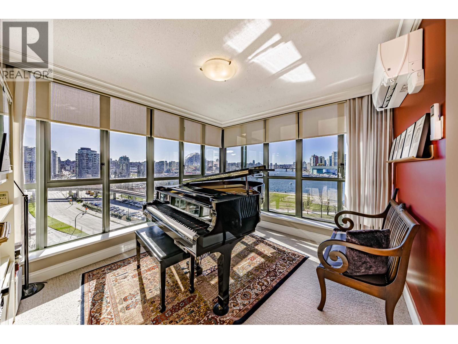 Spectacular 180* views of False Creek Waterfront, Mountains, Olympic village, Cityscapes and Sunsets from this large 1484 sq.ft. 3 bedroom condo. Water Views from all living areas and bedrms. Fully renovated with top of the line appliances and materials. Bright open modern kitchen has European cabinets, Caesar stone counters, built-in steam oven, induction cook top, breakfast bar. Entry and kitchen have Merrato solid hardwood floors, and living/dinning areas have "wool" wall to wall carpeting. Newer modern gas fireplace. Front corner bedrm/Familyrm has stunning "custom cast" floor to ceiling Glass door. Just steps to the seawall and all that this beautiful location and city have to offer. New St. Paul's Hospital is 1 Blk away. (id:5347)